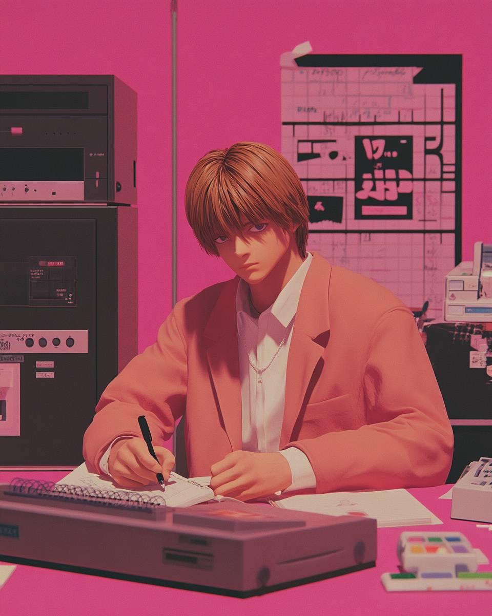 Light Yagami writing in his notebook --ar 4:5 --v 6.1 --sref 20240916