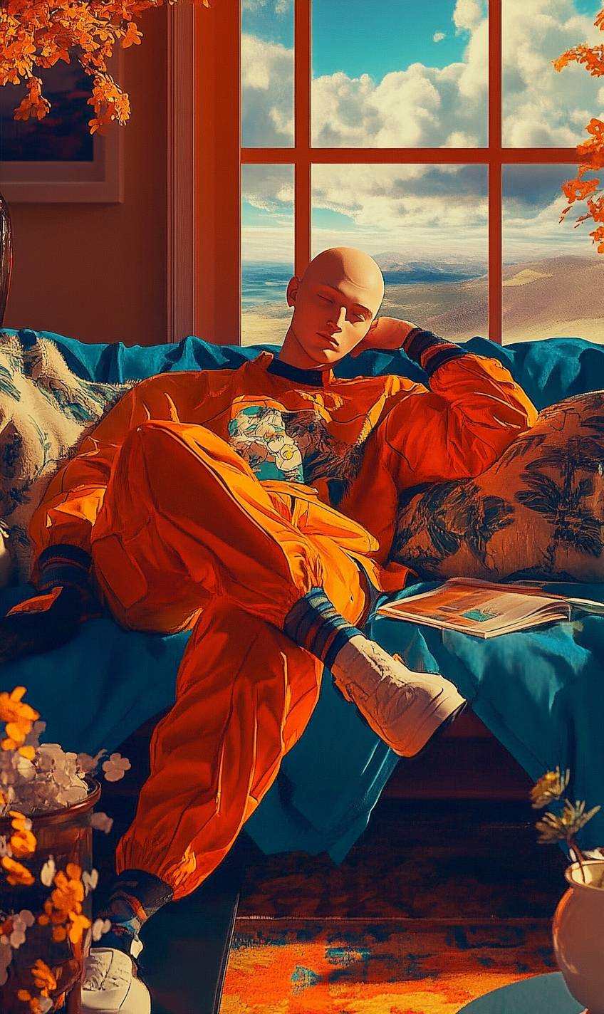 Saitama relaxing on a couch --ar 3:5 --v 6.1 --sref 1463695486