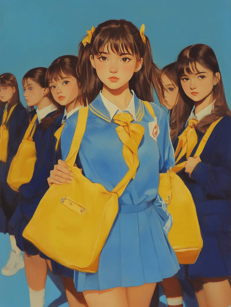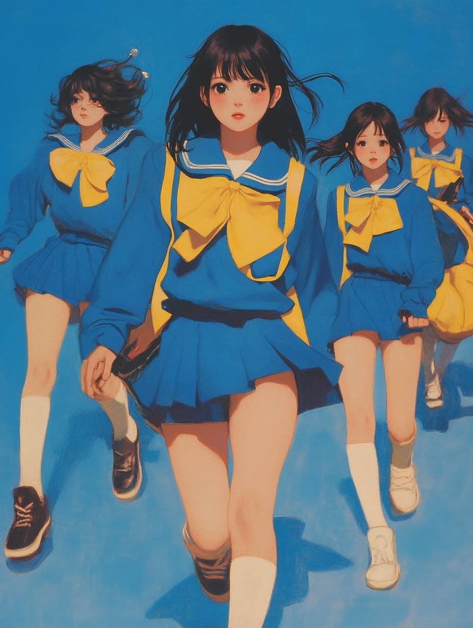 Haruhi Suzumiya leading a group --ar 3:4 --v 6.1 --sref 111307734