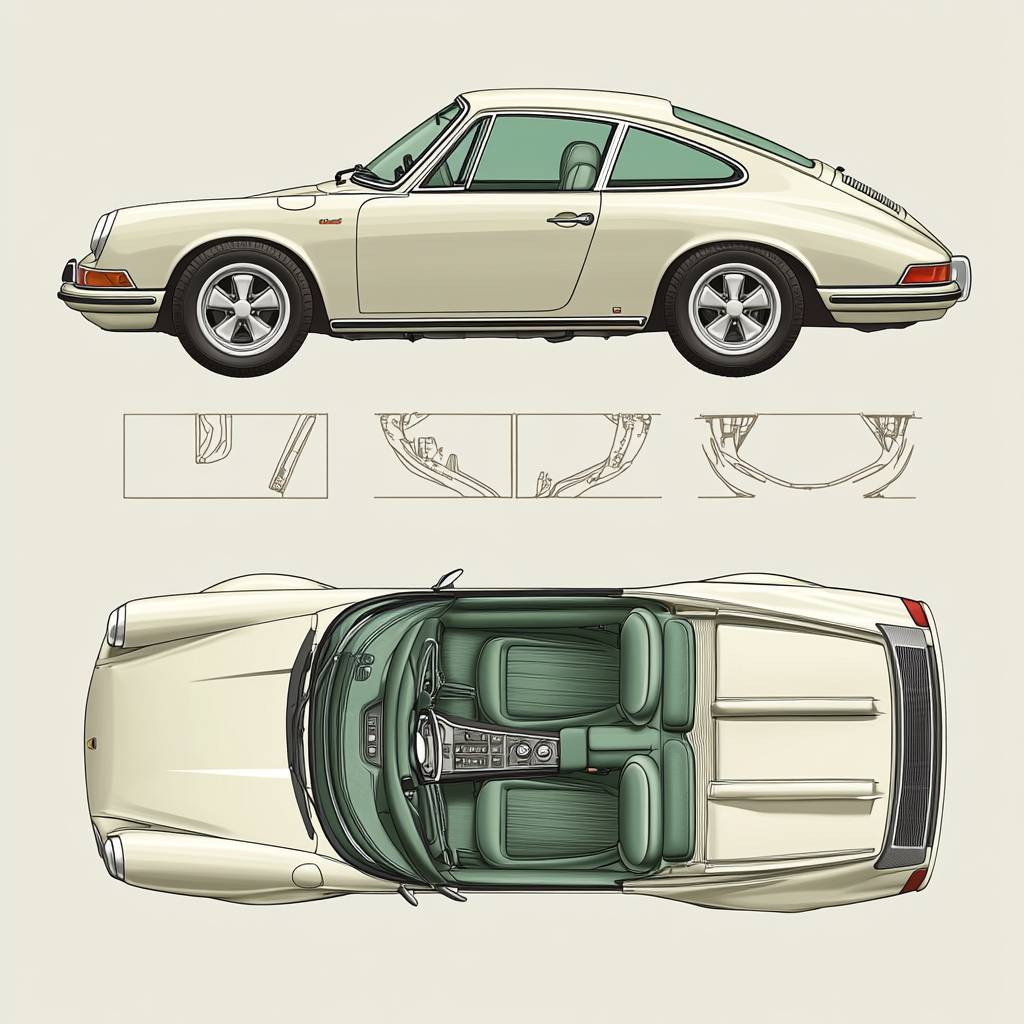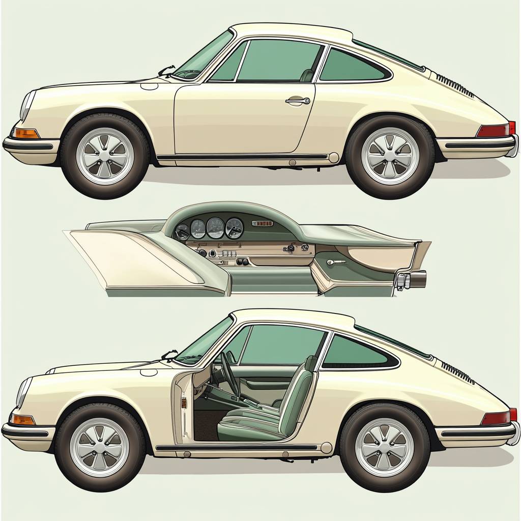 A classic design for a 1969 Porsche 912 in light ivory with green and gray accents.