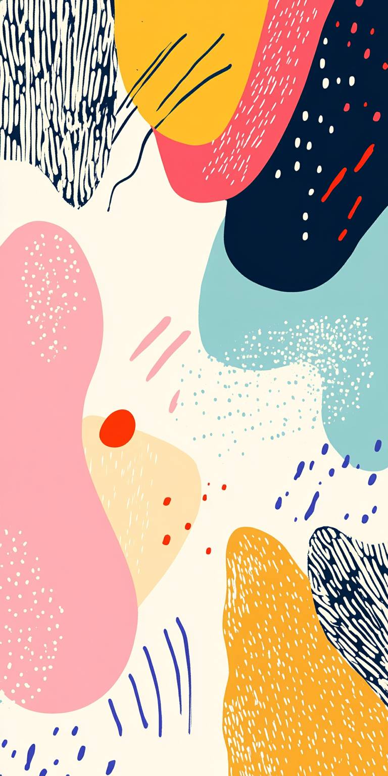 Cute print ready artwork pastel bacground, modern and good use of colour, happy mood, gentle bruh strokes, no subject just colours or objects --ar 1:2 --v 6.1