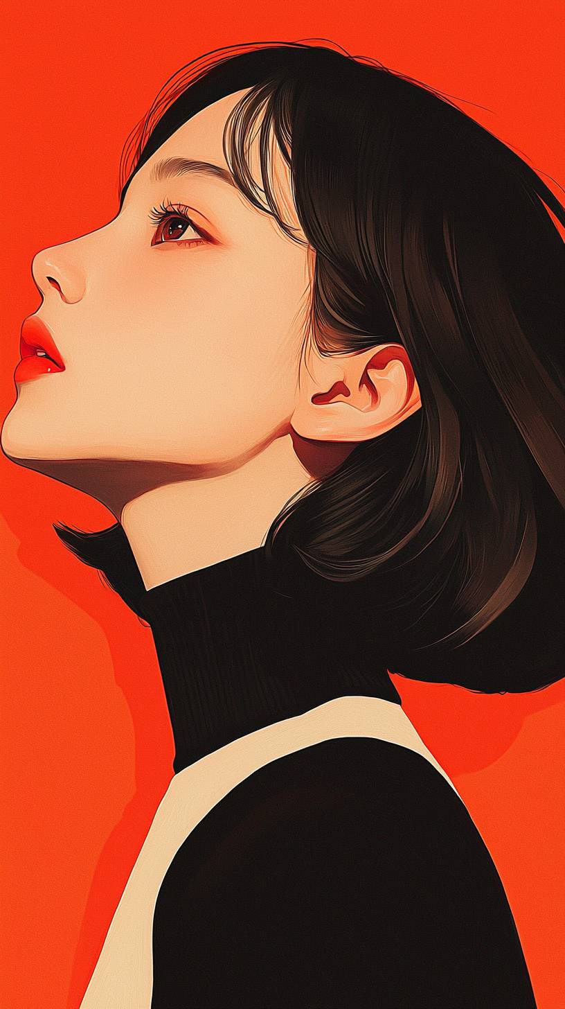 A young woman wearing a sleek, form-fitting turtleneck that complements her figure, styled with a pencil skirt for an elegant outfit, high difinition, clean line, color artmospher, masterpiece, flat color, animecore --ar 9:16 --quality 2 --style raw --personalize 742ymln --stylize 250 --v 6.1