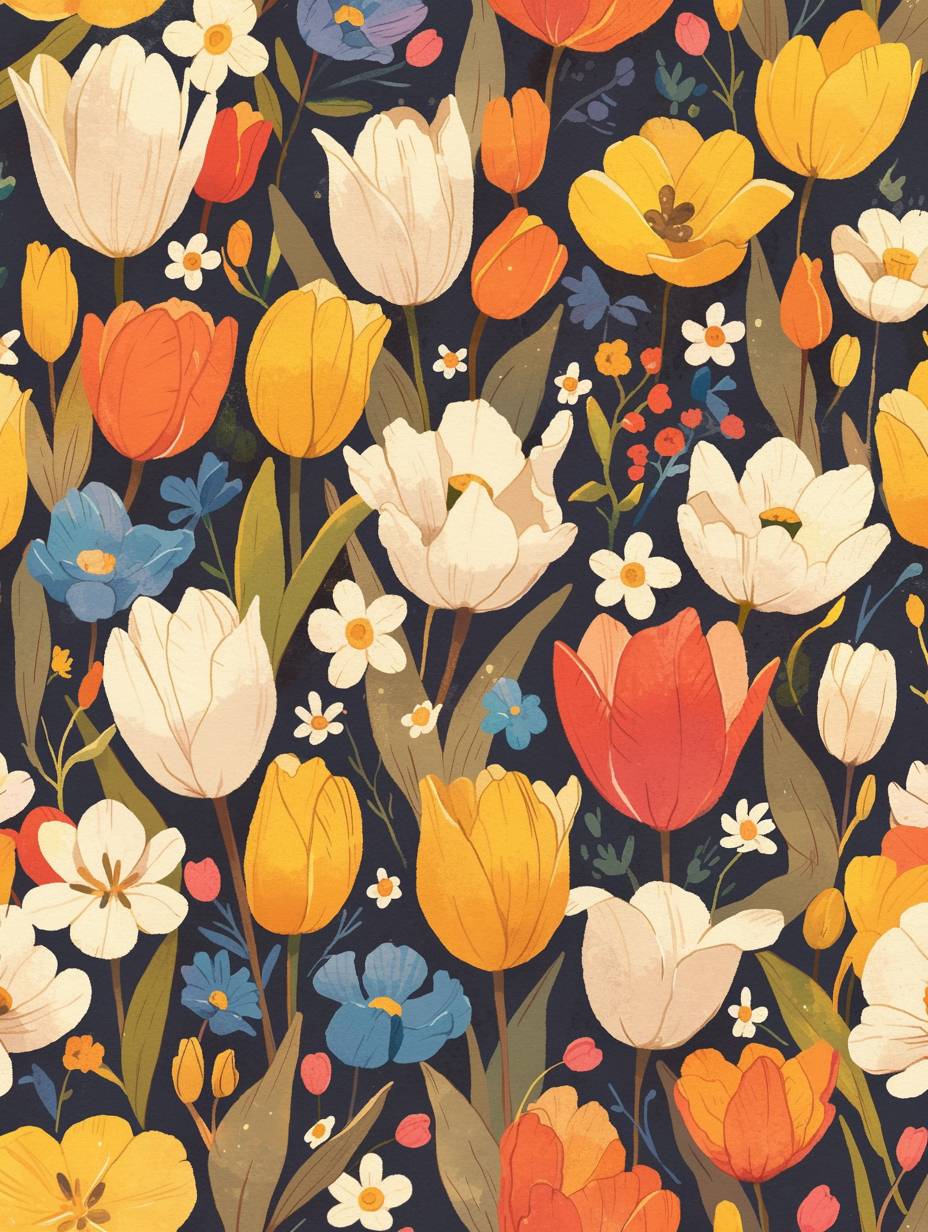 A colorful tulip pattern suitable for fabric print.
