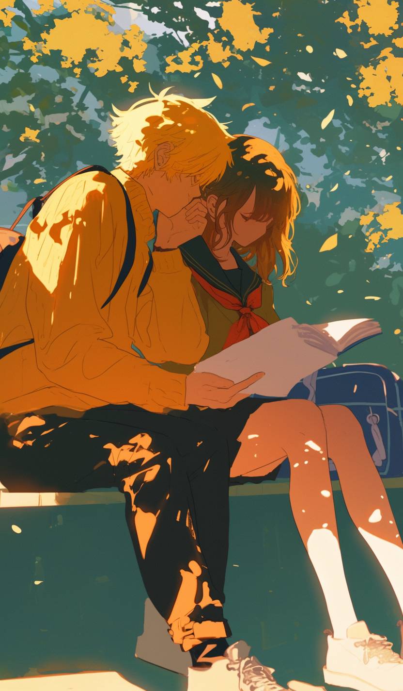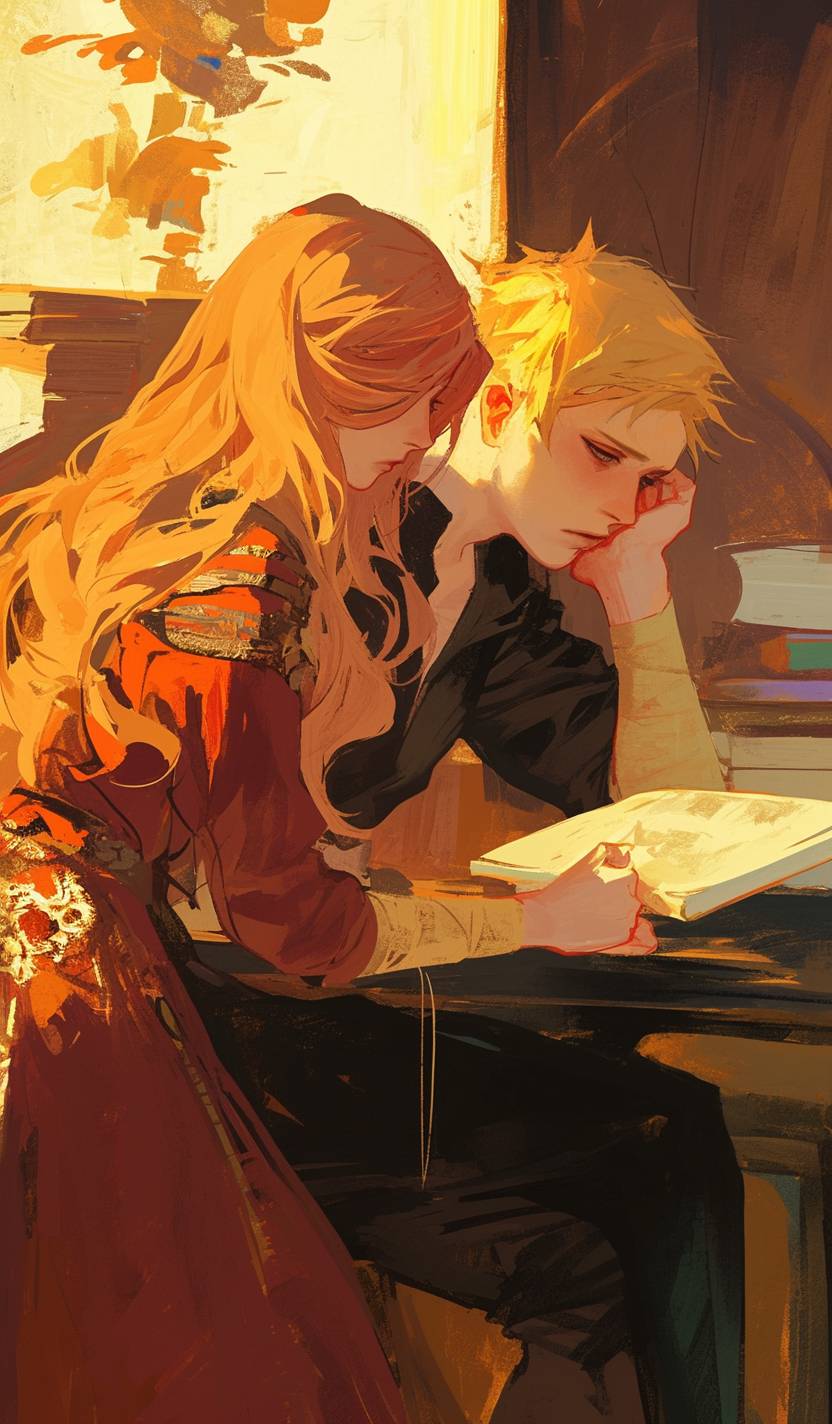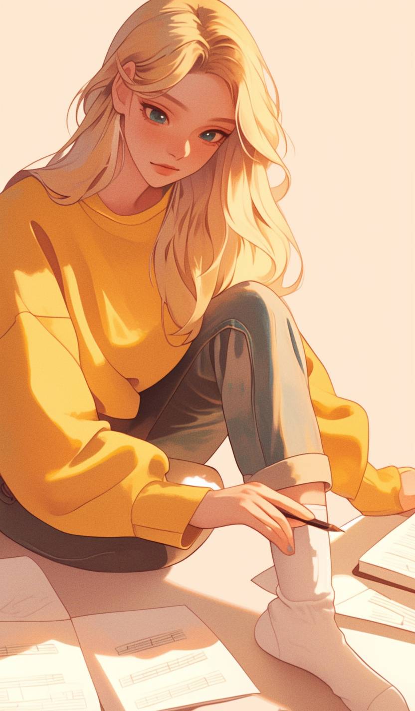 A girl with yellow hair studies and misses her faithful boyfriend.