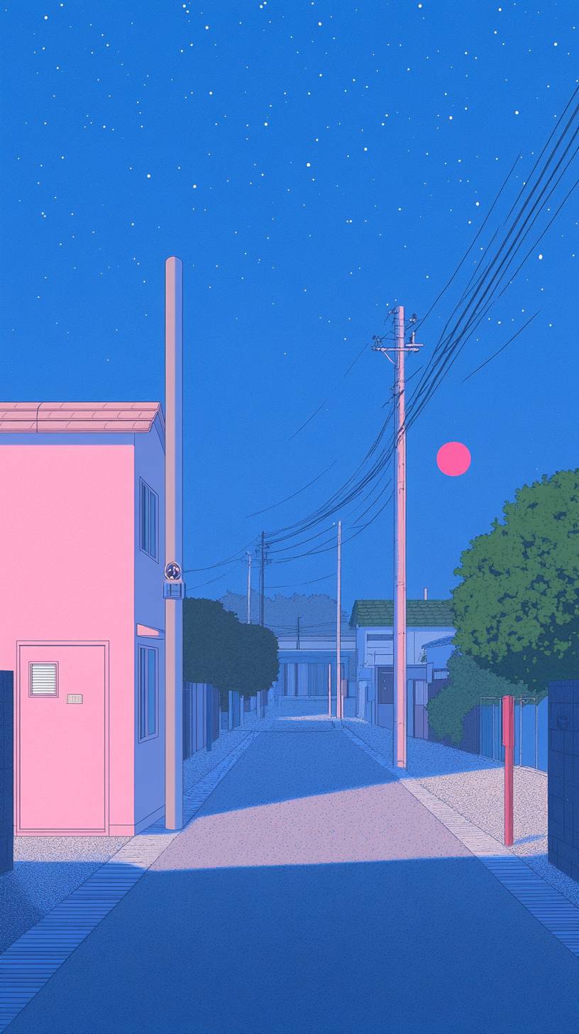 Minimalist Anime Cityscape at Night