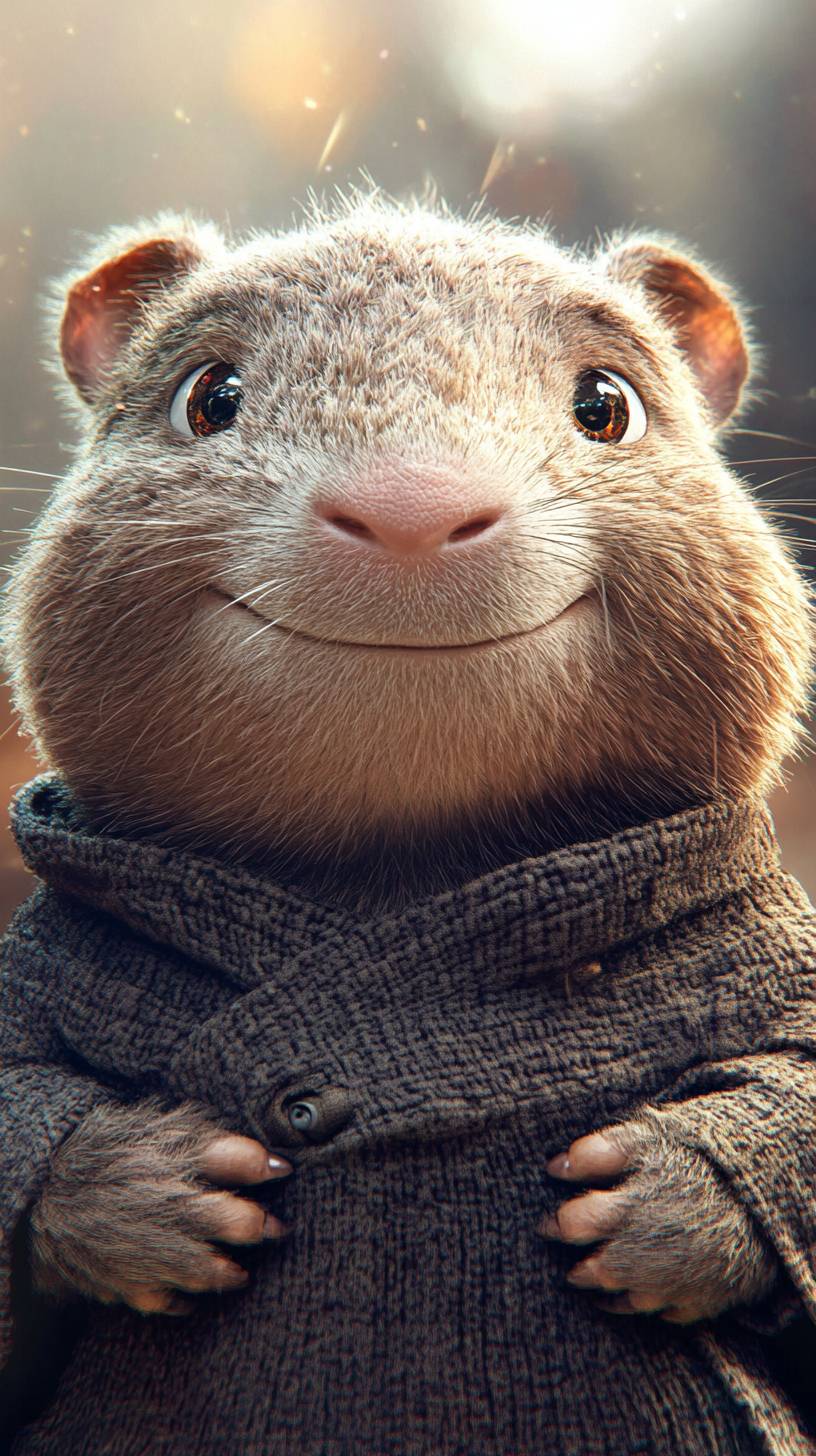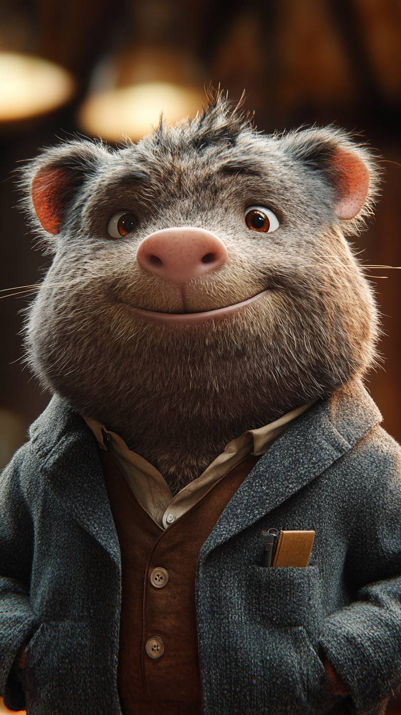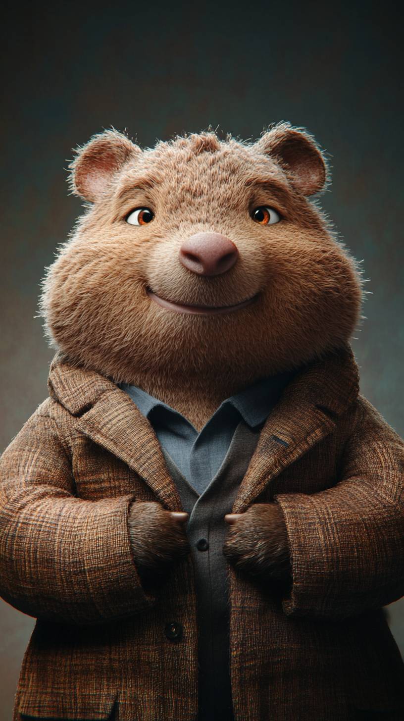 Pixar-style headshot of a talking vegan chubby wombat with a balding hair line with a sarcastic smirk and soy outfit --ar 9:16 --stylize 200 --v 6.1