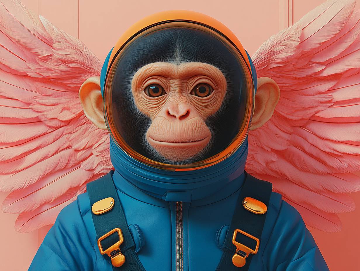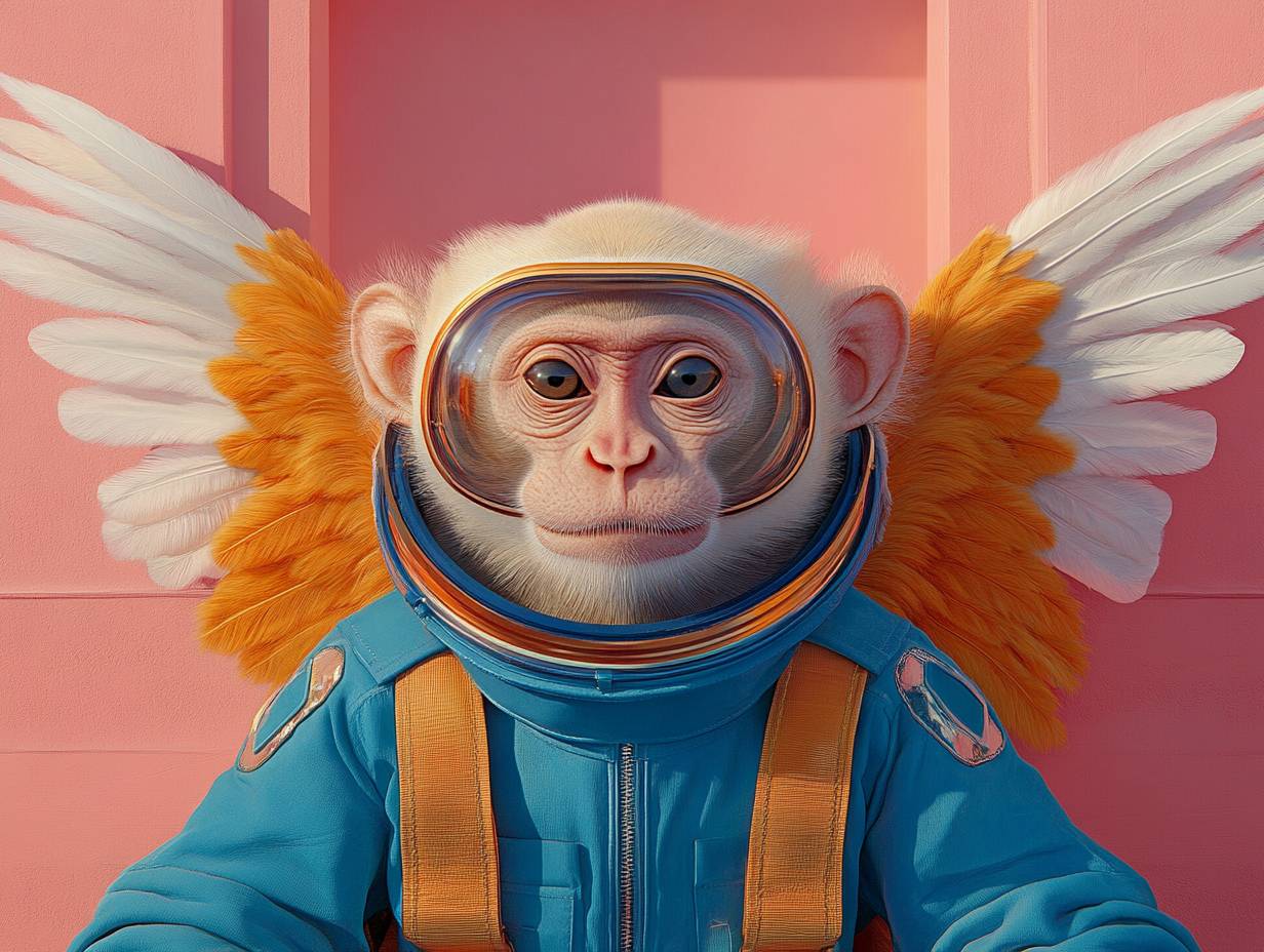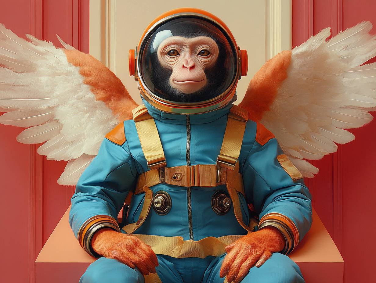 Monkey in astronaut suit with angel wings