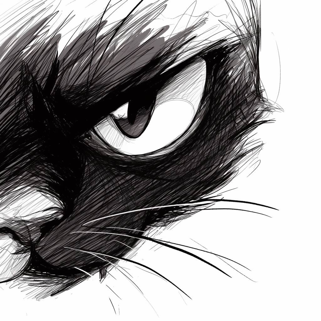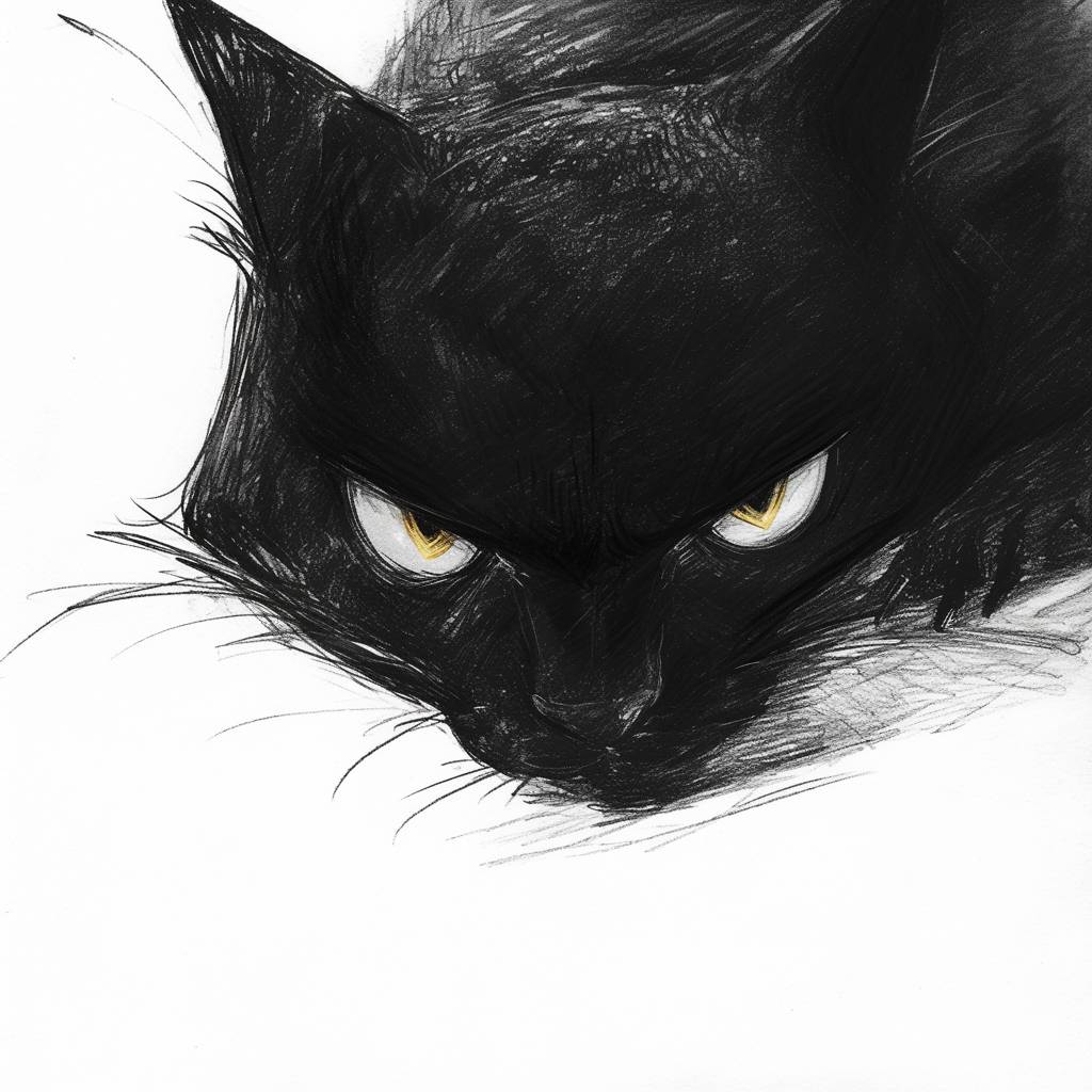 A black cat came forward on a white background with fierce eyes.