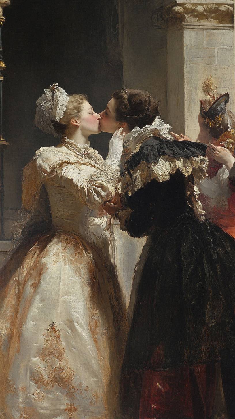Lady Hortense is surprised when Esme kisses her.