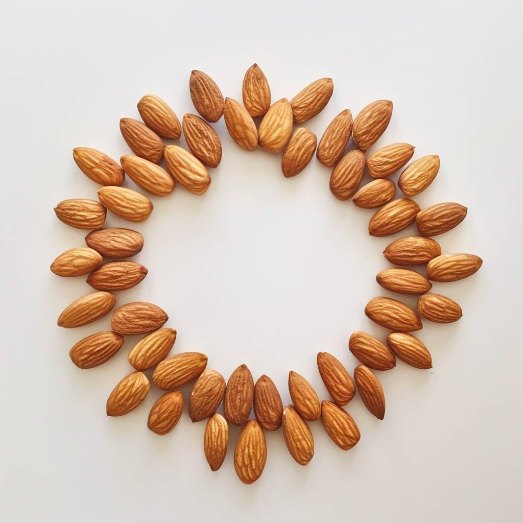 Almond pieces arranged symmetrically to form the shape of [Subject], set against a white background.