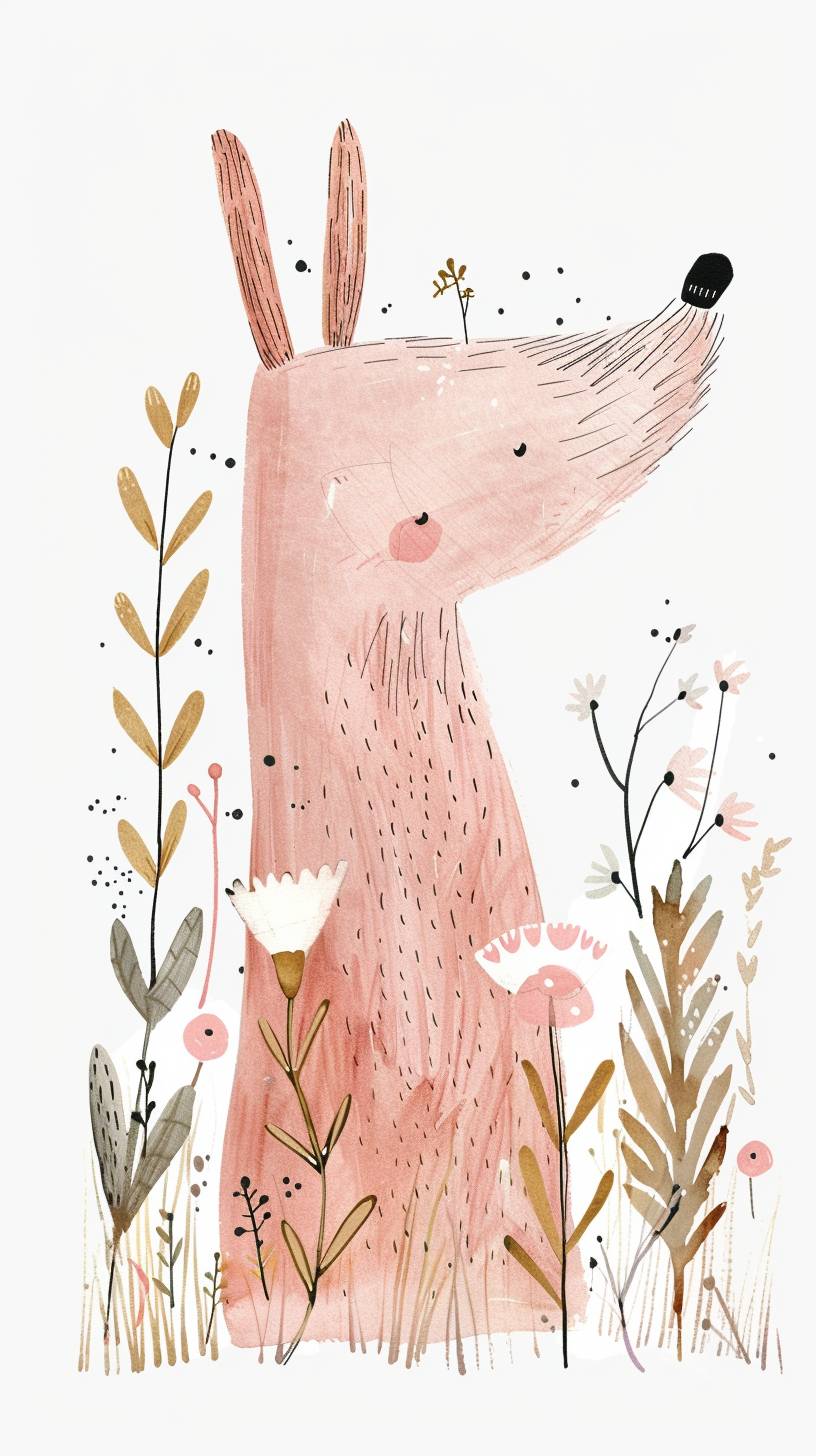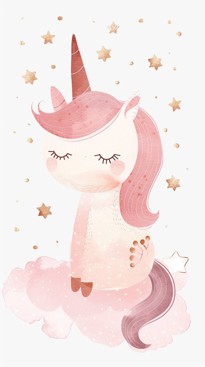 17w A cute [ pink unicon] clipart, organic forms, in the style of Jon Klassen, desaturated light and airy pastel color palette, nursery art, white background --ar 9:16 --style raw --v 6.0