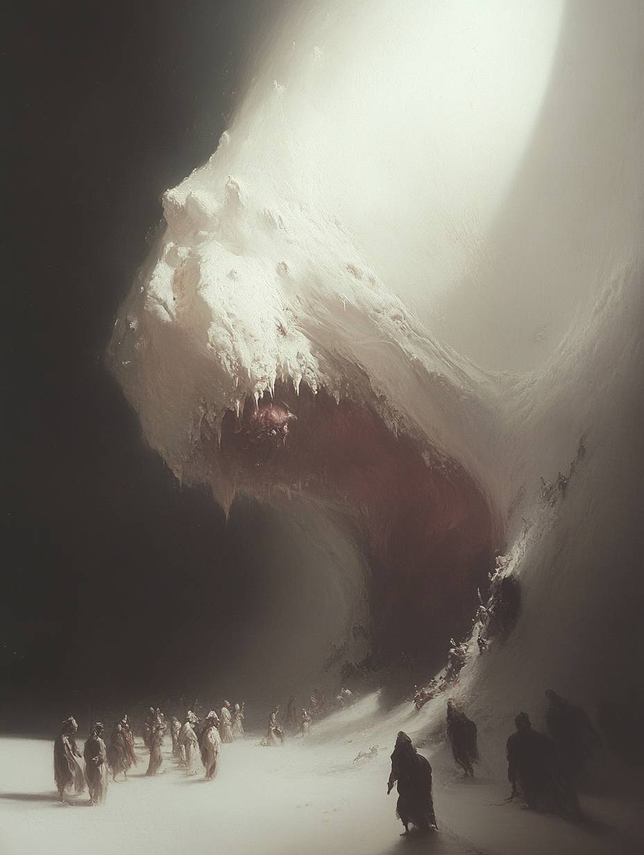 a mASSIVE HORN FORM SPACESHIP ,by Jacob Philipp Hackert, by Thomas Gainsborough,Dramatic lighting, photorealistic oil painting, baroque oil painting --chaos 25 --ar 3:4 --style raw --personalize zv7k236 --stylize 750 --v 6.1