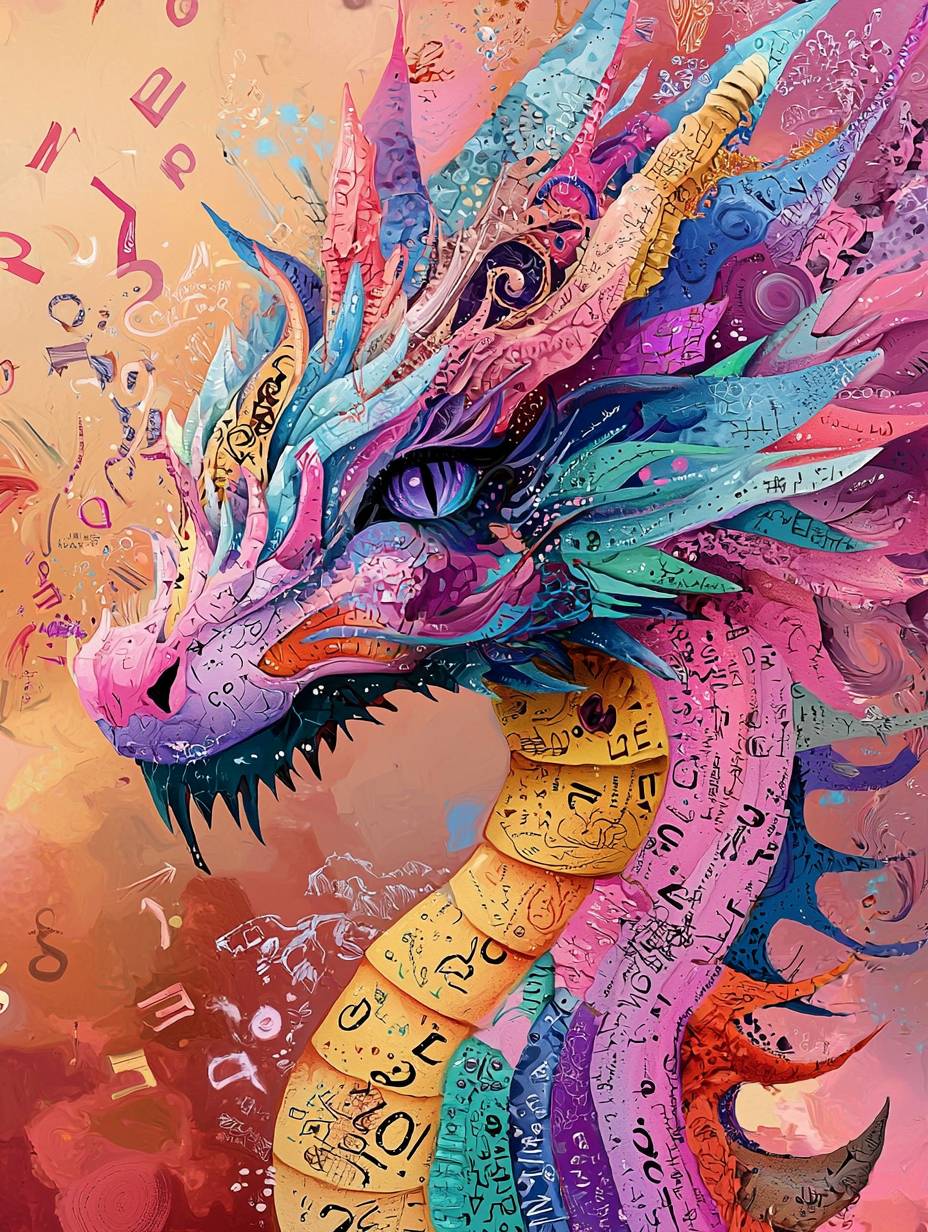 spitting dragon colored letters and numbers everywhere, HD --chaos 20 --ar 3:4 --quality 2 --sref 3853960100 3970971813 2981886397 3746909642 3692710904 1757561961 1605870273 --personalize 4zulszt --stylize 750 --v 6.1