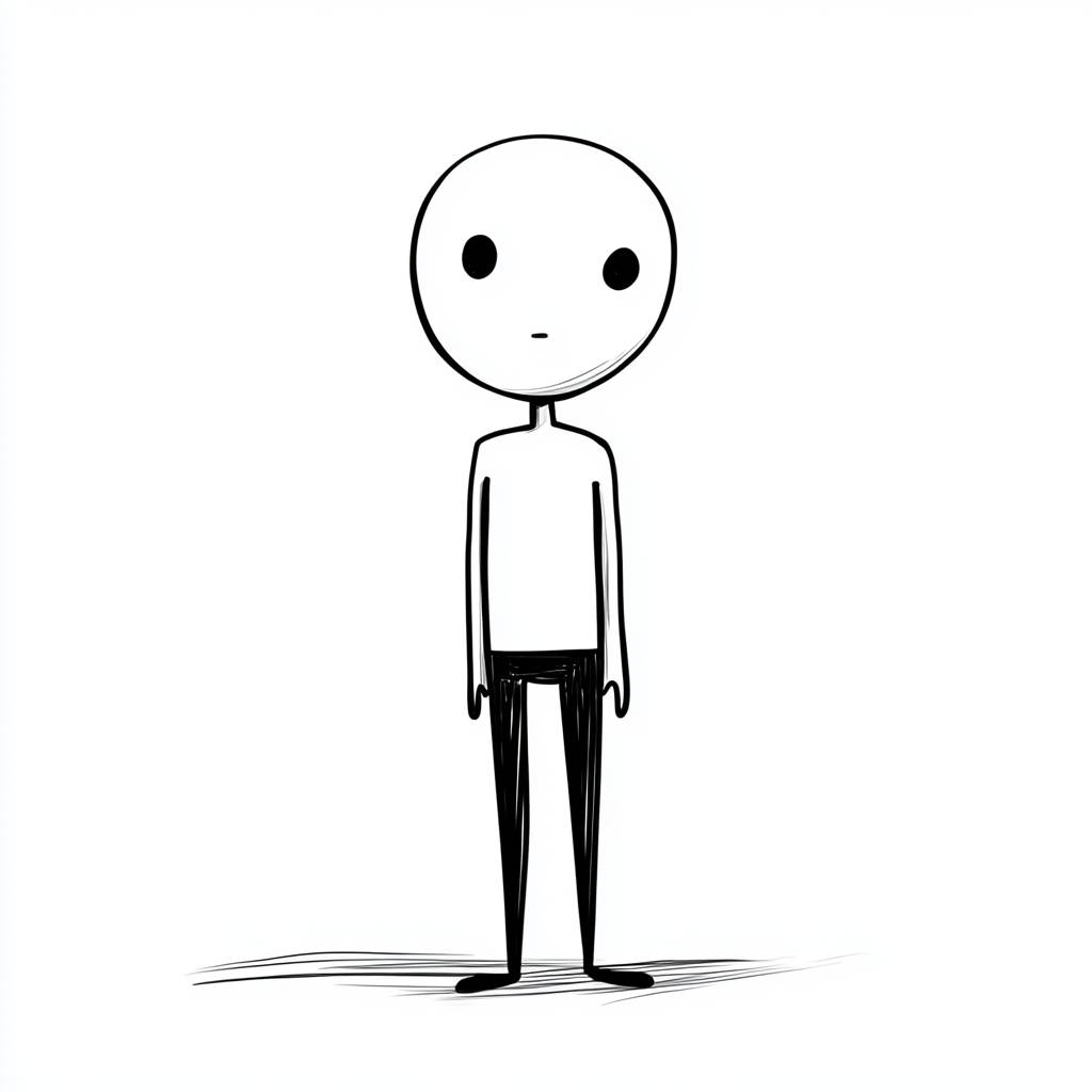 A simple, minimalistic line drawing of a human character with a humorous and quirky expression.
