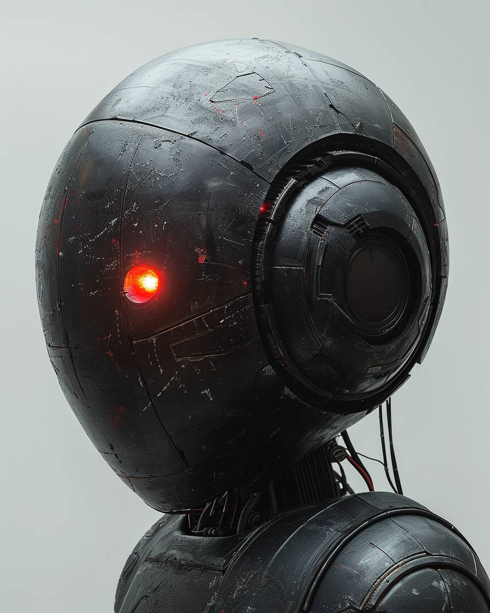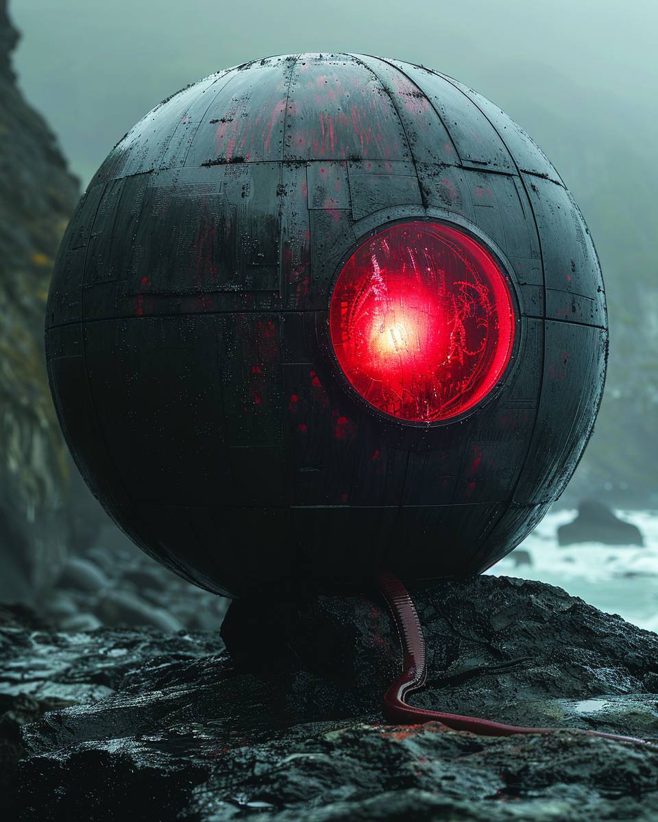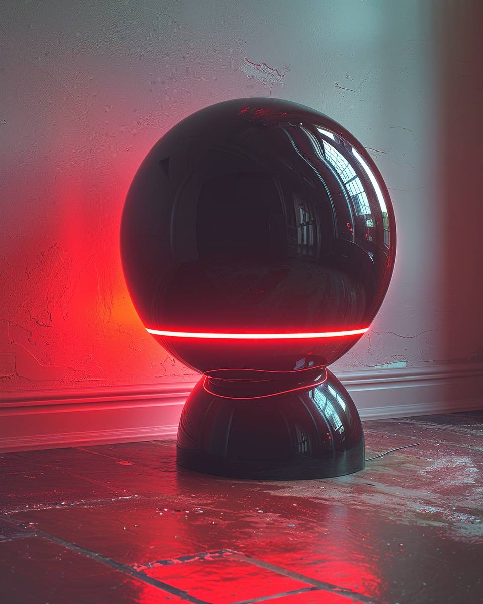 the cover art of rood magazine has a sphere, a worm, and a glowing red light, in the style of conceptual portraiture, made of rubber, futuristic robots, elina karimova, light black, technology-based art, oversized objects --s 500 --ar 4:5 --v 6.0 --style raw