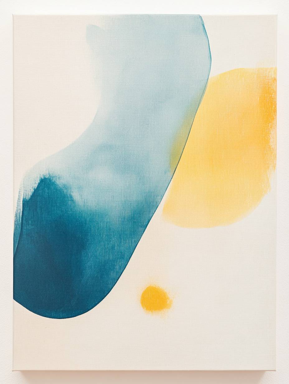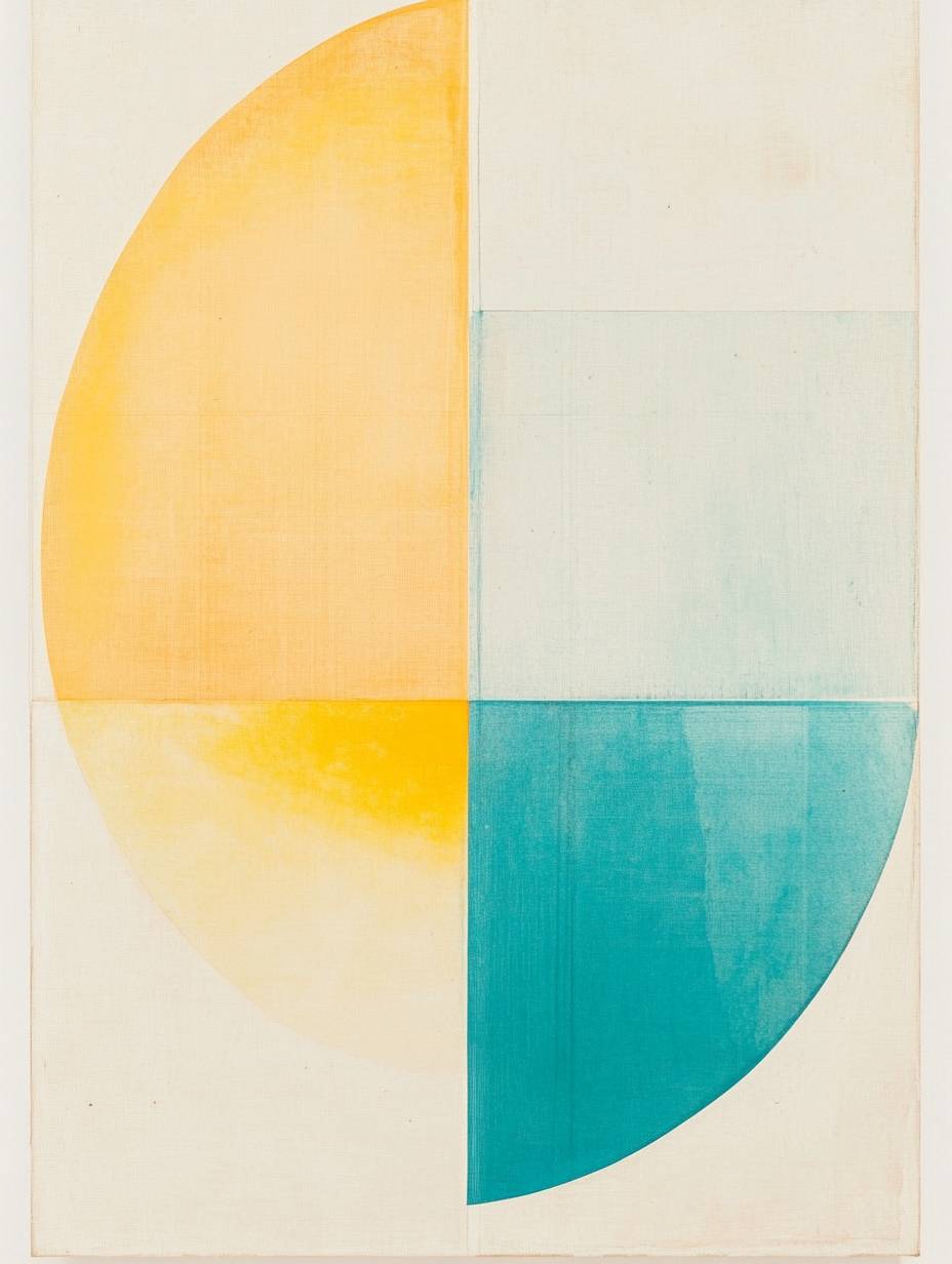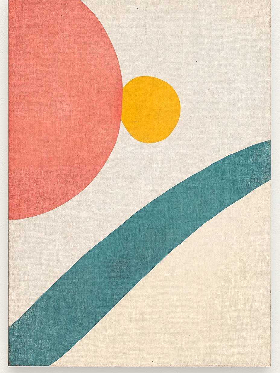 abstract shape of blue teal curving across the canvas with a yellow blob crossing over the teal line on a white backgroubd --ar 3:4 --personalize iices7e --v 6.1