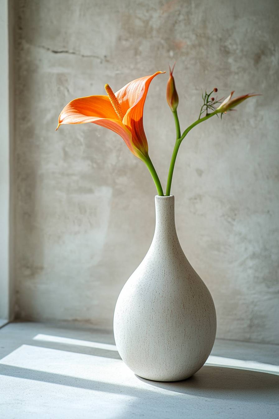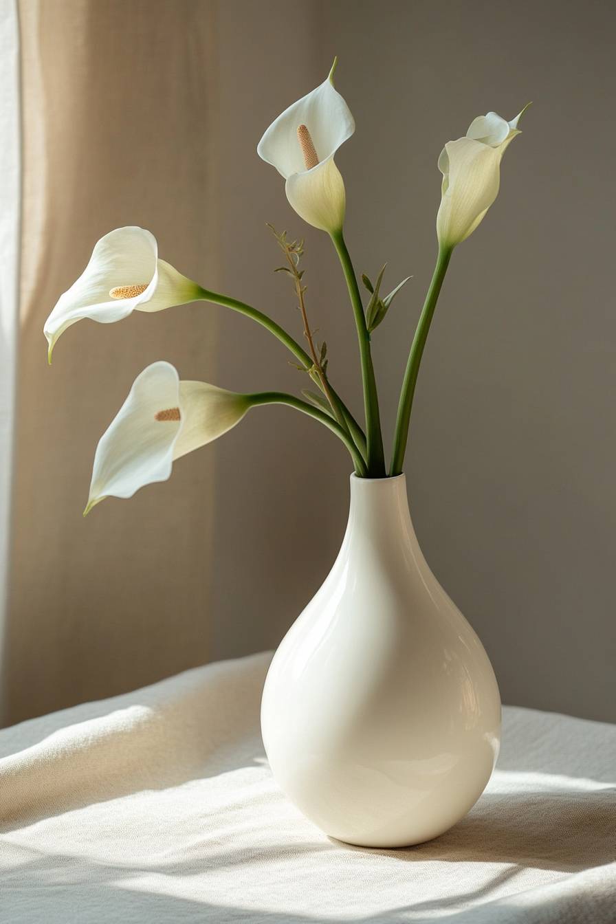 Modern white vase with a flower