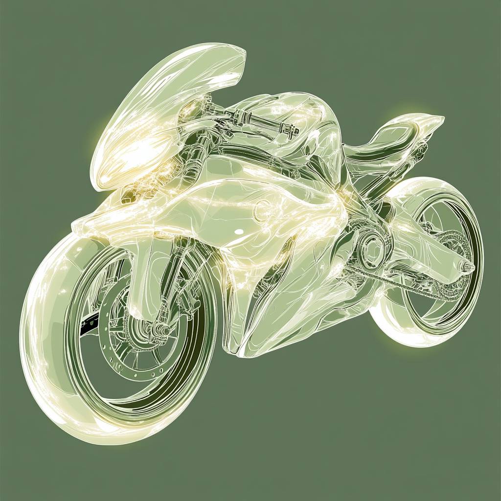 A vector artwork of the futuristic motorcycle from Tron in a watermark elegance style. The bike is subtly embedded into the design with soft, flowing cream lines that give it an ethereal, elegant look. The details, such as the glowing light trails and futuristic details, are delicately outlined, while the rest fades softly into the background. The olive green background adds a sense of depth, allowing the cream lines to blend seamlessly for a smooth, high-end visual --v 6.1