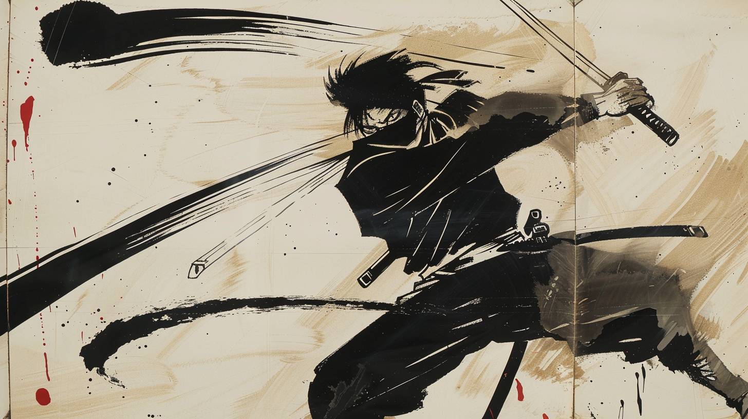 hand-drawn Japanese animation keyframe timesheet, katana hero anime action sequence, negative space, sakuga animation cel --ar 16:9 --style raw --stylize 50 --v 6.0