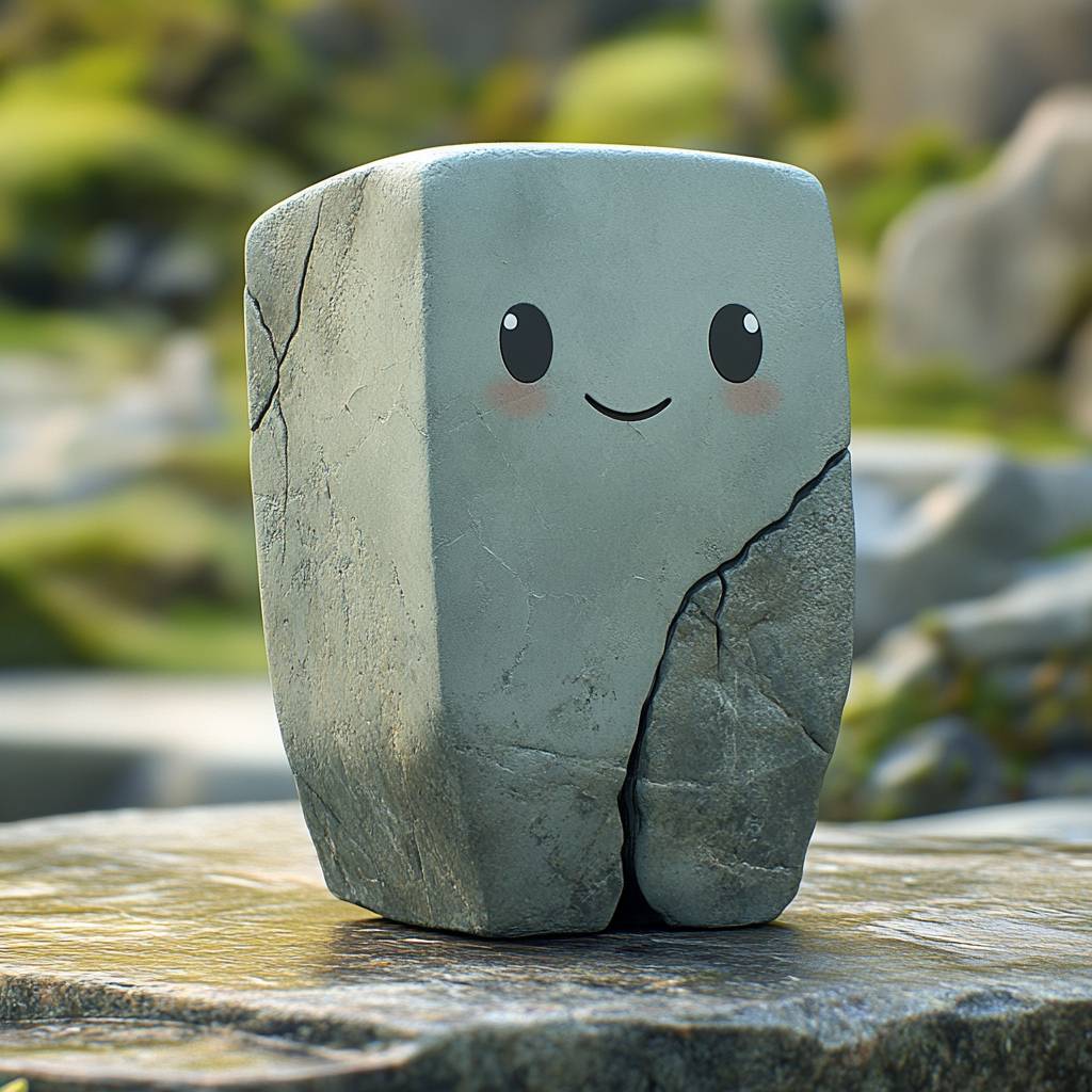 Generate a 2D stone statue, cute body with certain cracks, emitting faint light, 2D, flat design, cartoon, simple shape, low detail.