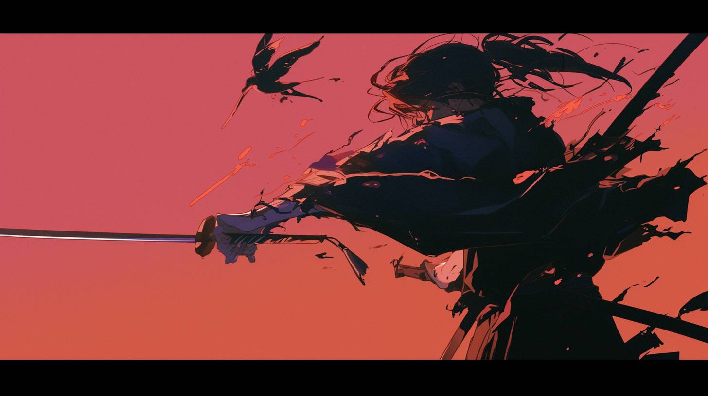 Japanese animation's keyframe and timesheet showcase a katana hero anime action sequence, emphasizing negative space and sakuga animation art.