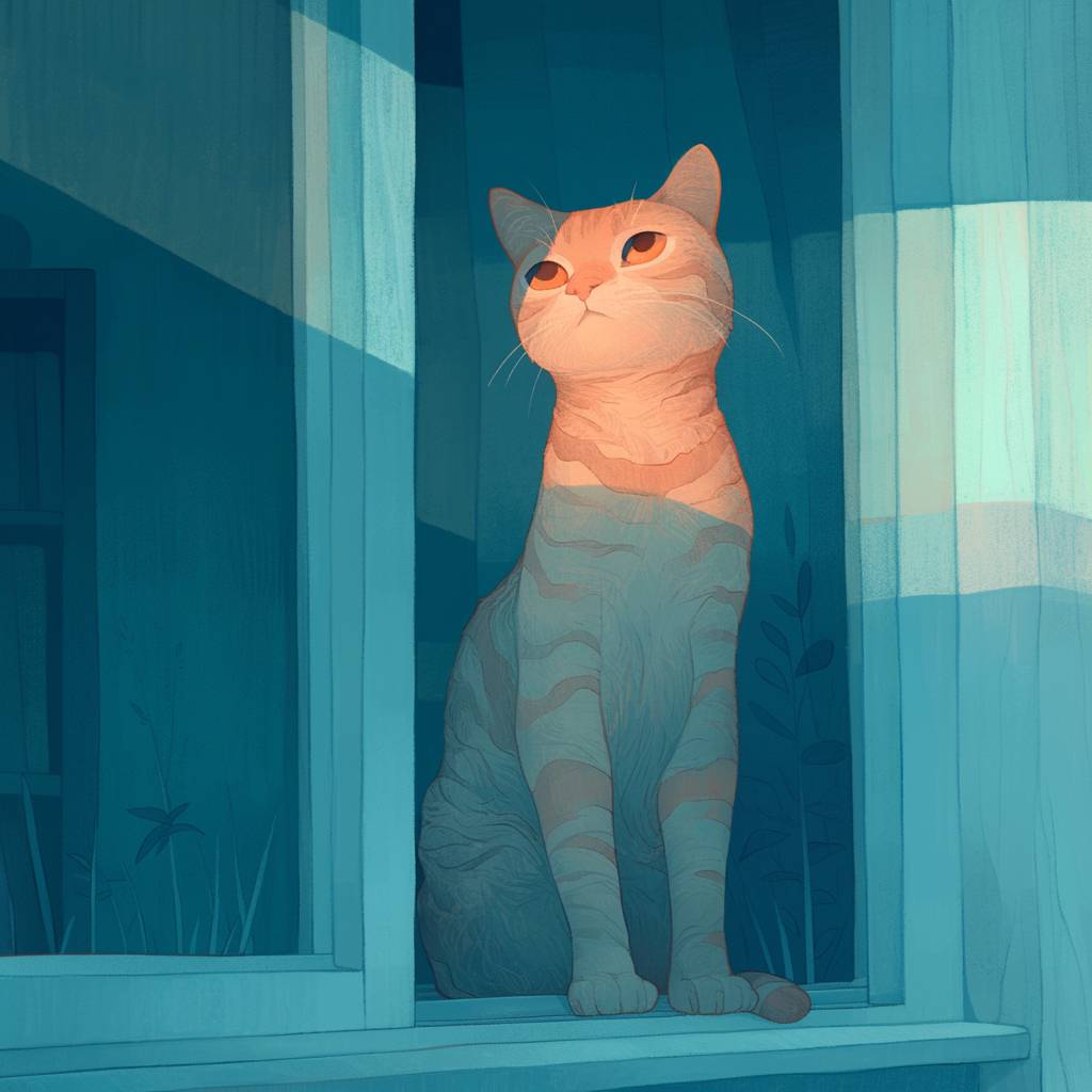 A quiet cat in front of the windowsill