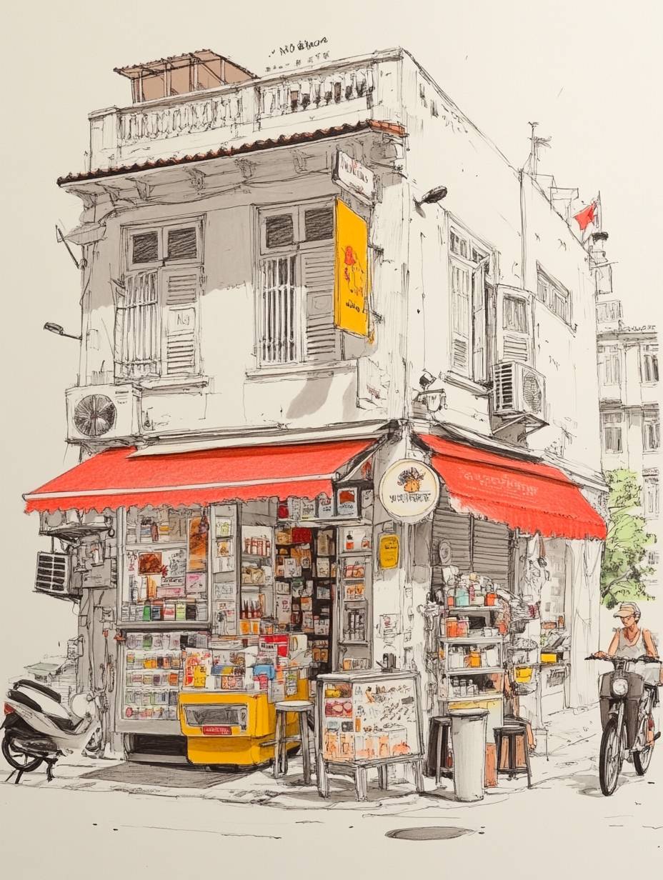 A sketch of a bustling Thai city, capturing the vibrant street life with swift, decisive strokes, emphasizing the colorful architecture and intricate details, using a sketching pencil to convey the rough, yet lively texture of the urban scene, professional lighting effects to accentuate the warmth and vibrancy of the Thai culture --ar 3:4 --style raw --sref 3997751908 --profile z9e2qqw --stylize 1000 --v 6.1
