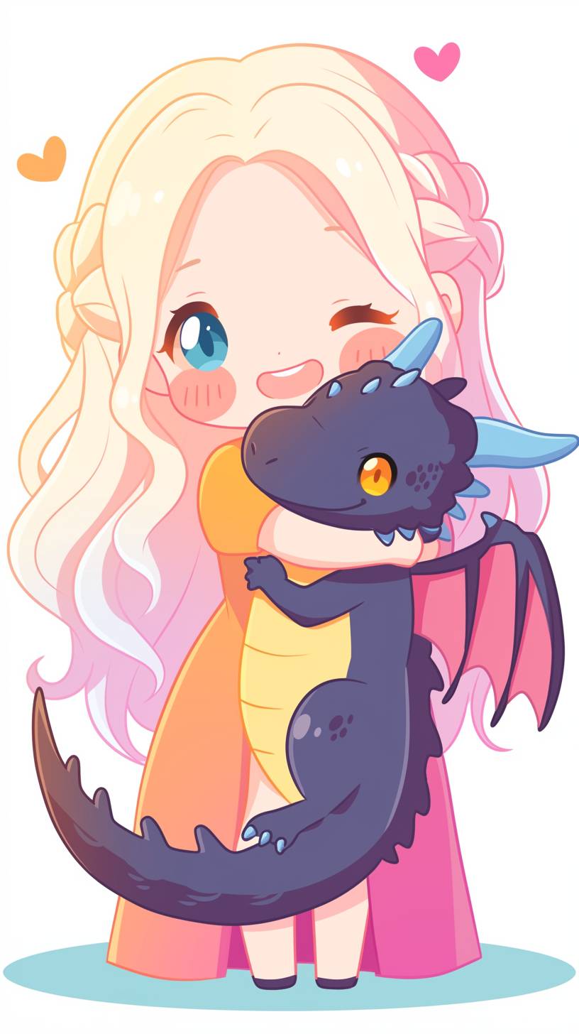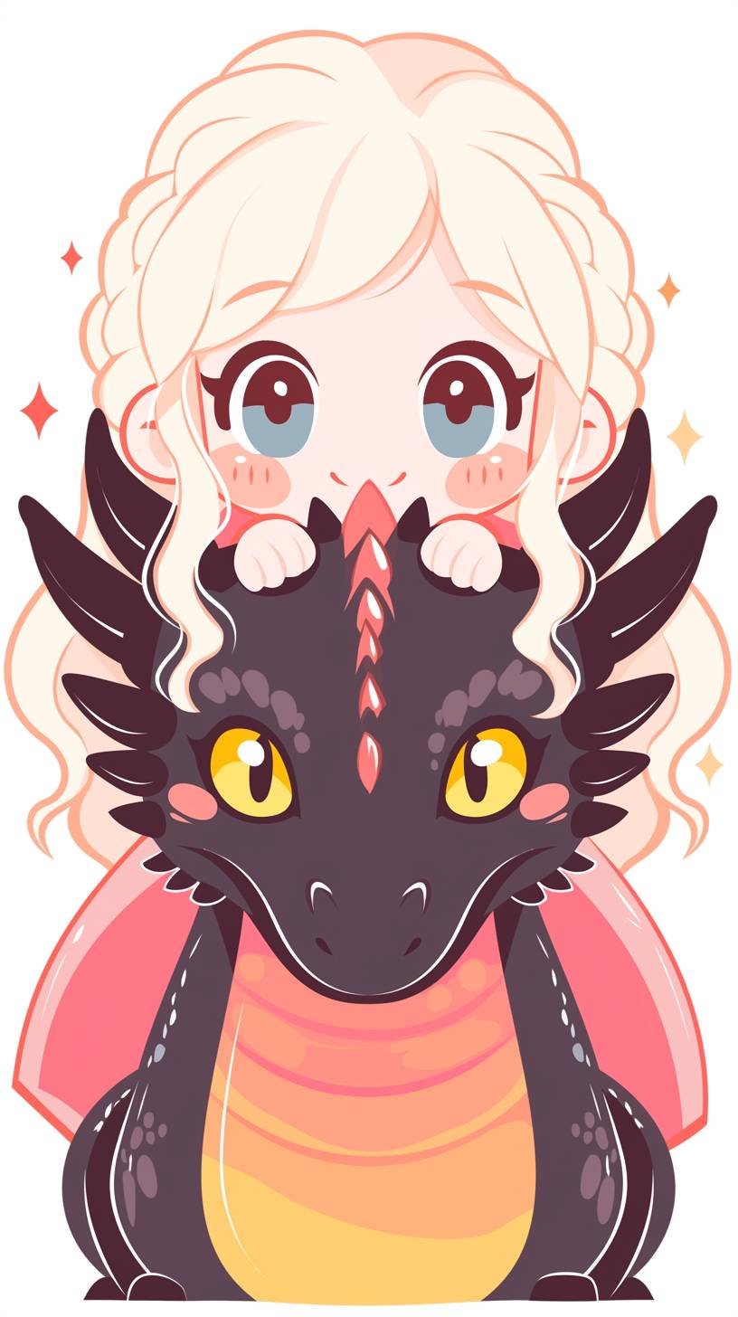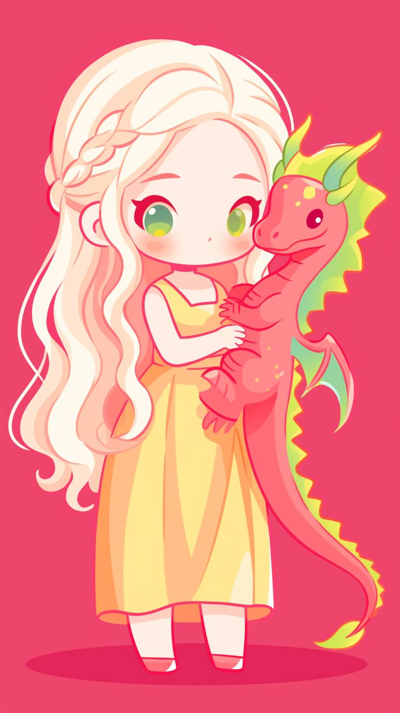 A simple drawing of [Daenerys Targaryen with her dragon], in the style of Allie Brosh with simple lines, flat colors and a stick figure, minimalistic, simple background --ar 9:16 --style raw --sref 2180650758 --niji 6