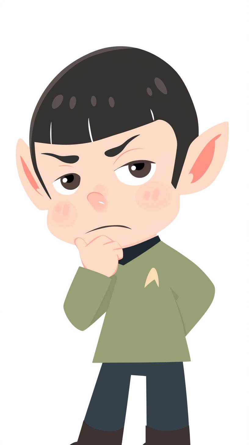 a cartoon of Spock, in the style of jim woodring --ar 9:16 --style raw --sref 2622040655 --niji 6