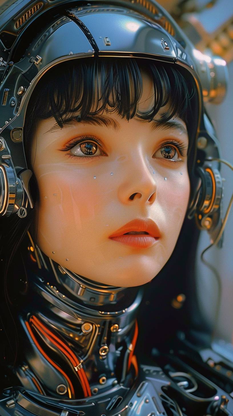 beautiful woman in futuristic plastic cases suit, by Masamune Shirow and Gil Elvgren and Hajime Sorayama, cyberpunk setting, 80s anime still, closeup shot, vintage tv screen grab, hyper detailed, hyper realistic --ar 9:16 --v 6.0
