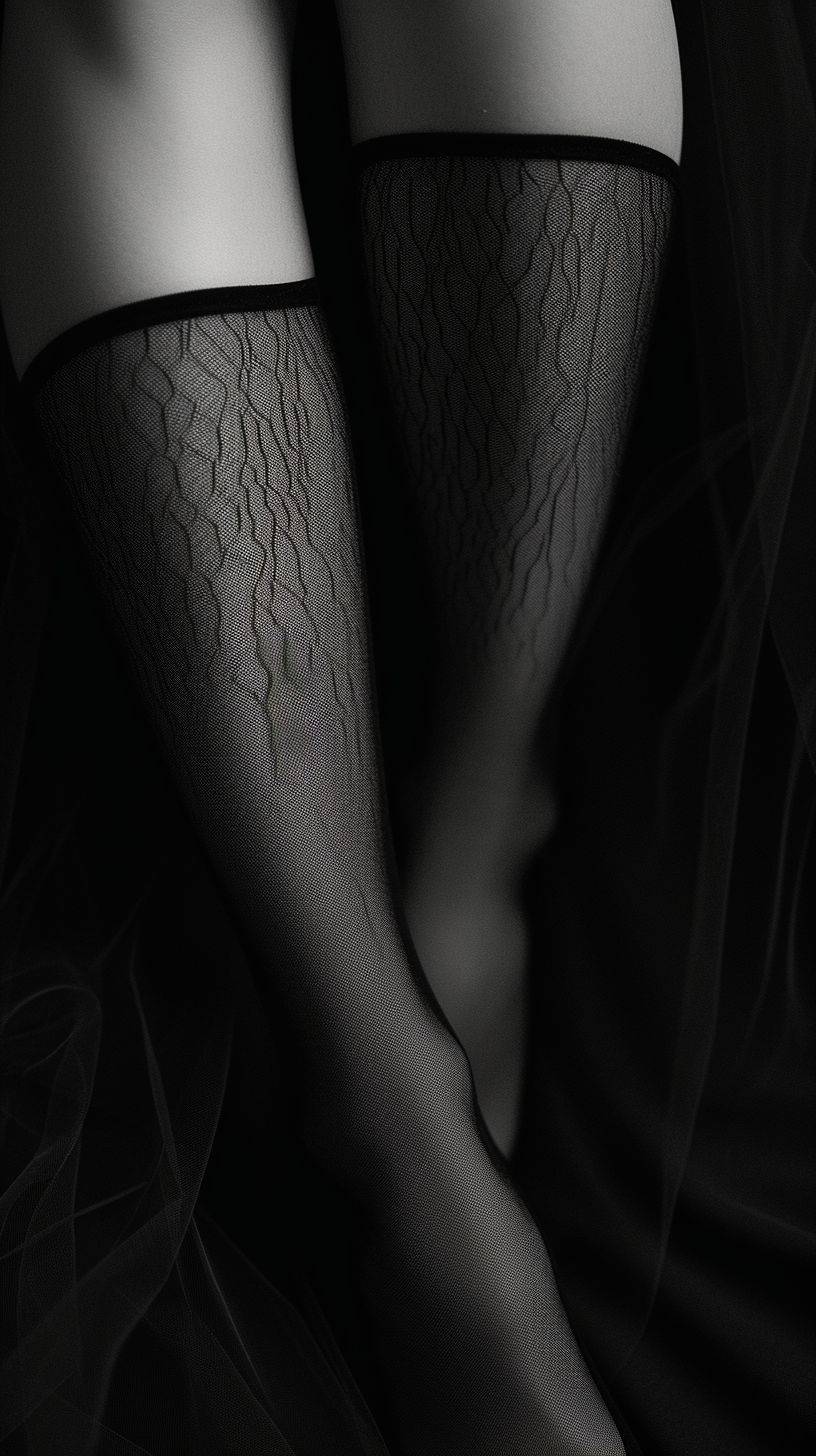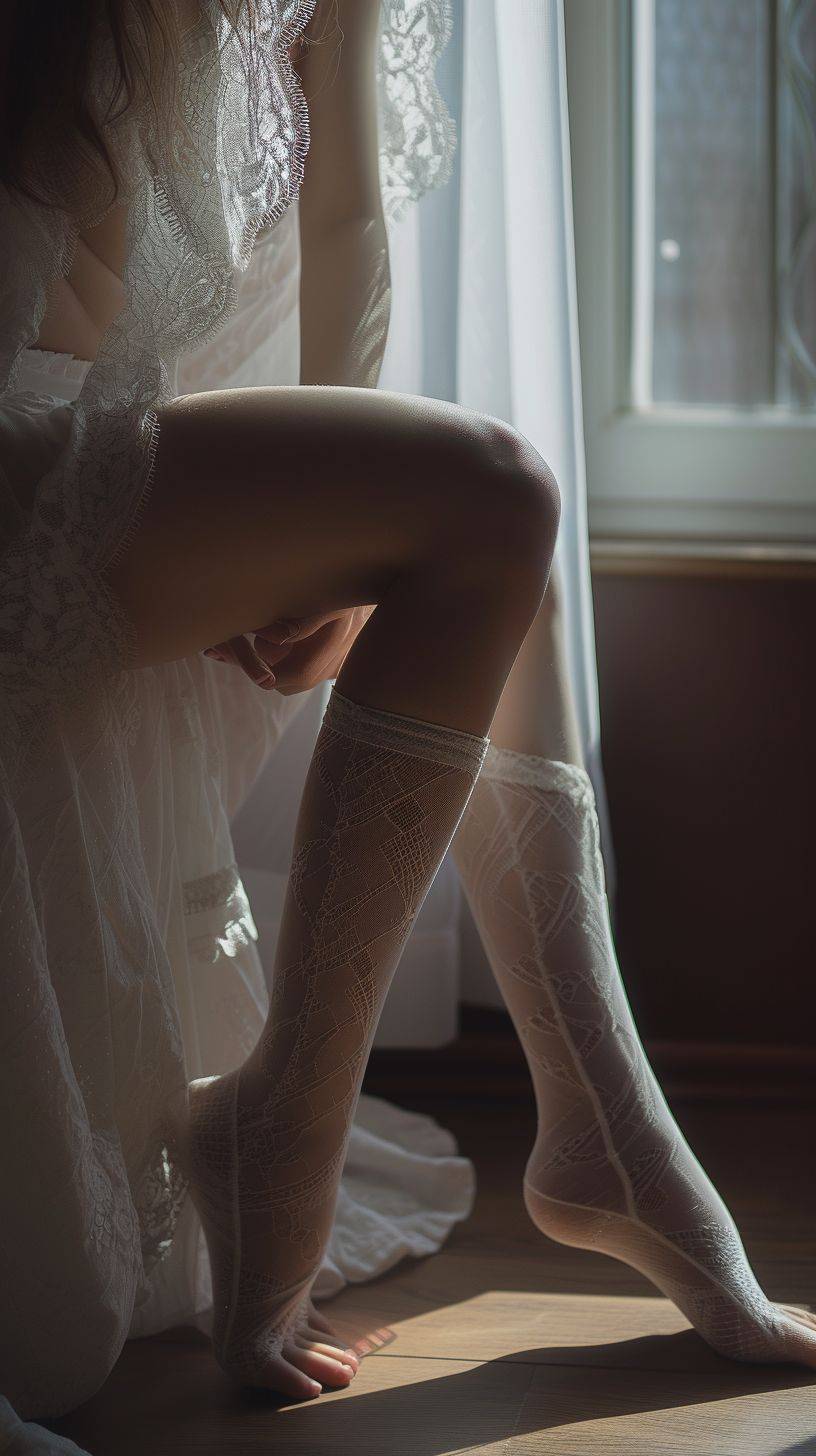 Close-up shots of legs wearing stockings, authentic photographic works.