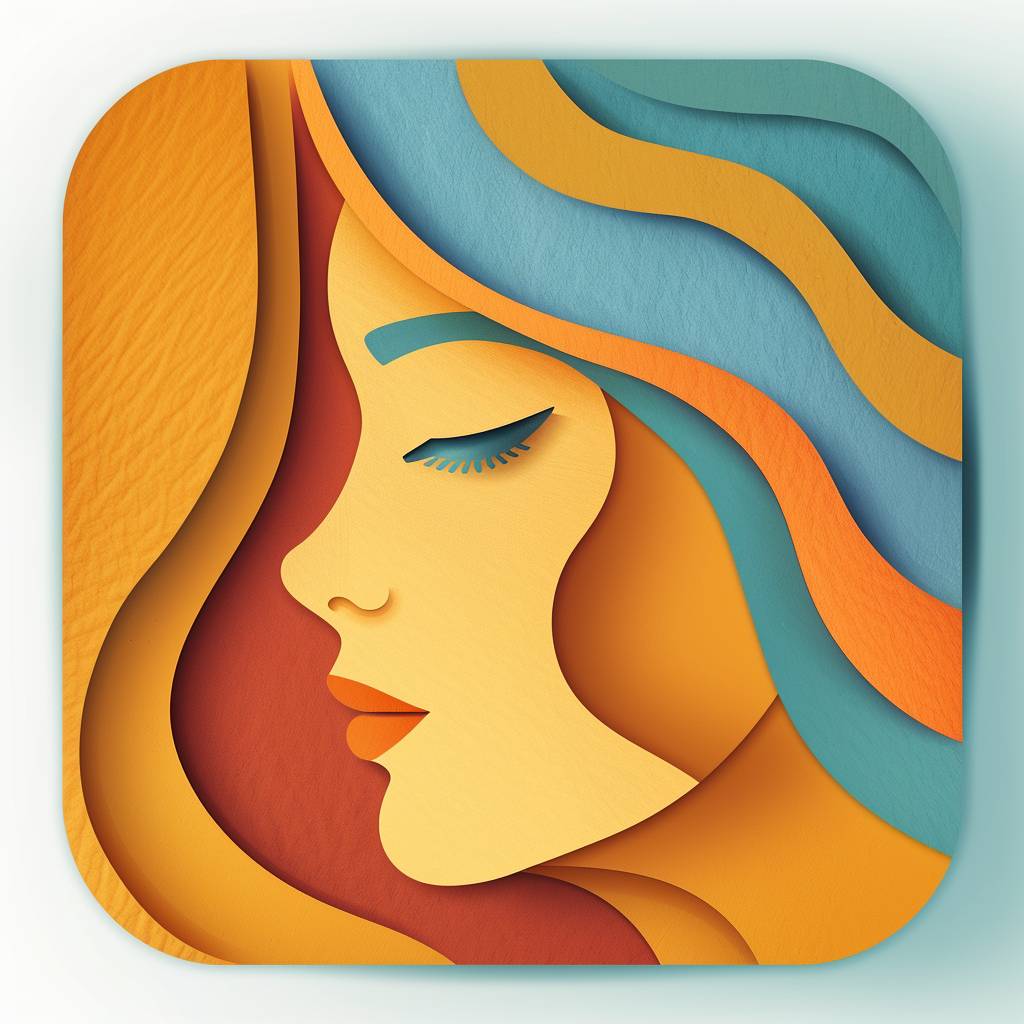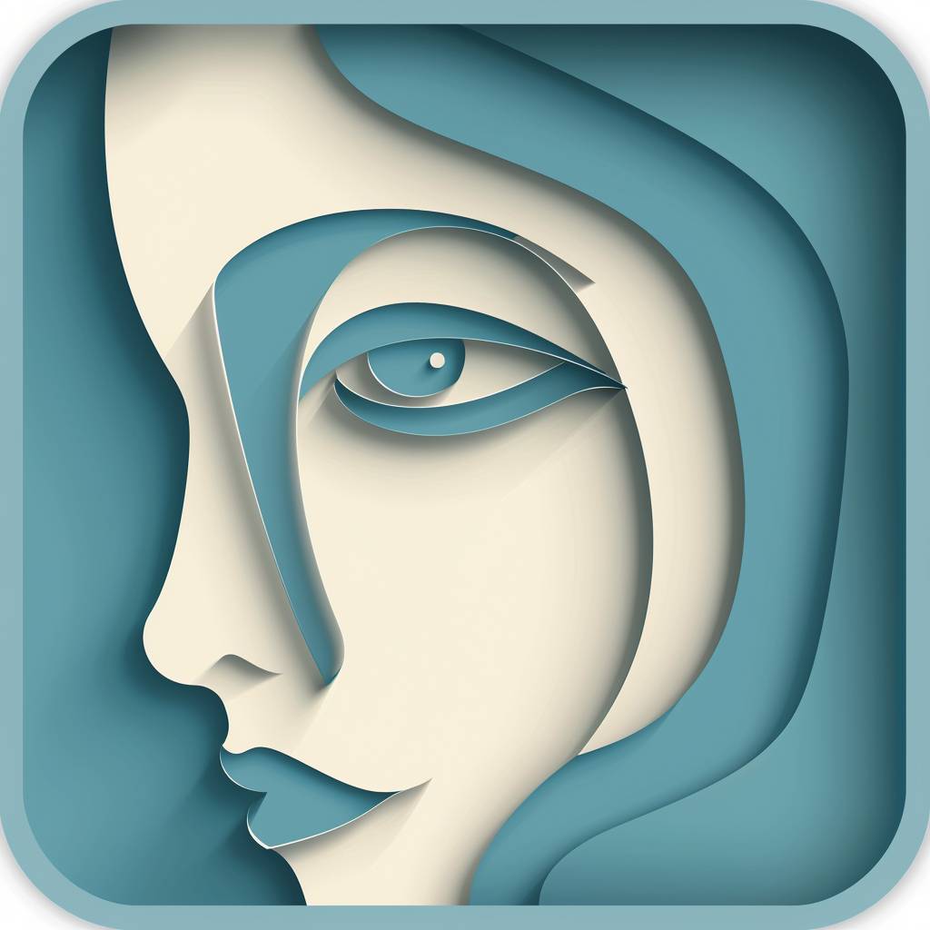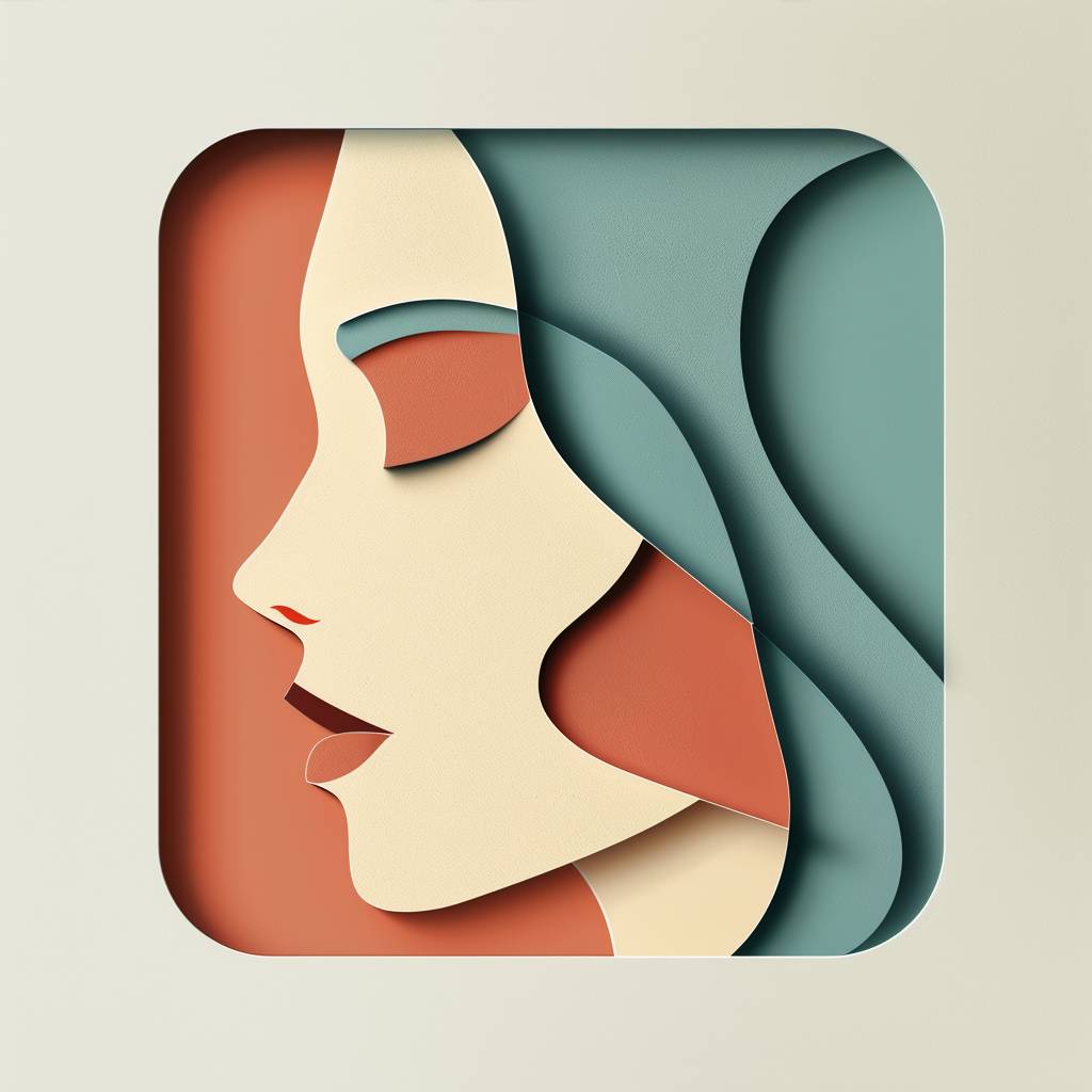 Mobile app icon depicting a female face in a minimal vintage paper cutout style.