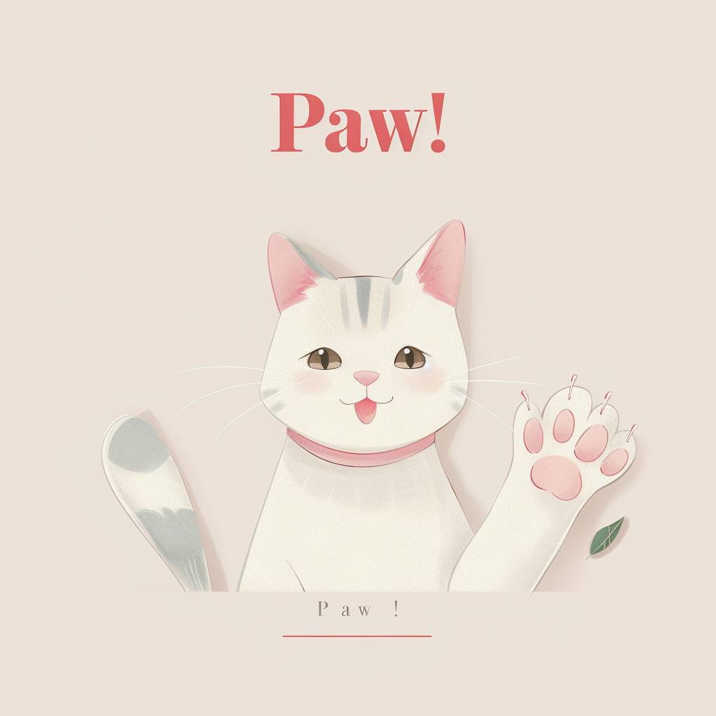 Logo for a cat cafe with the text 'Paw!Paw!'.