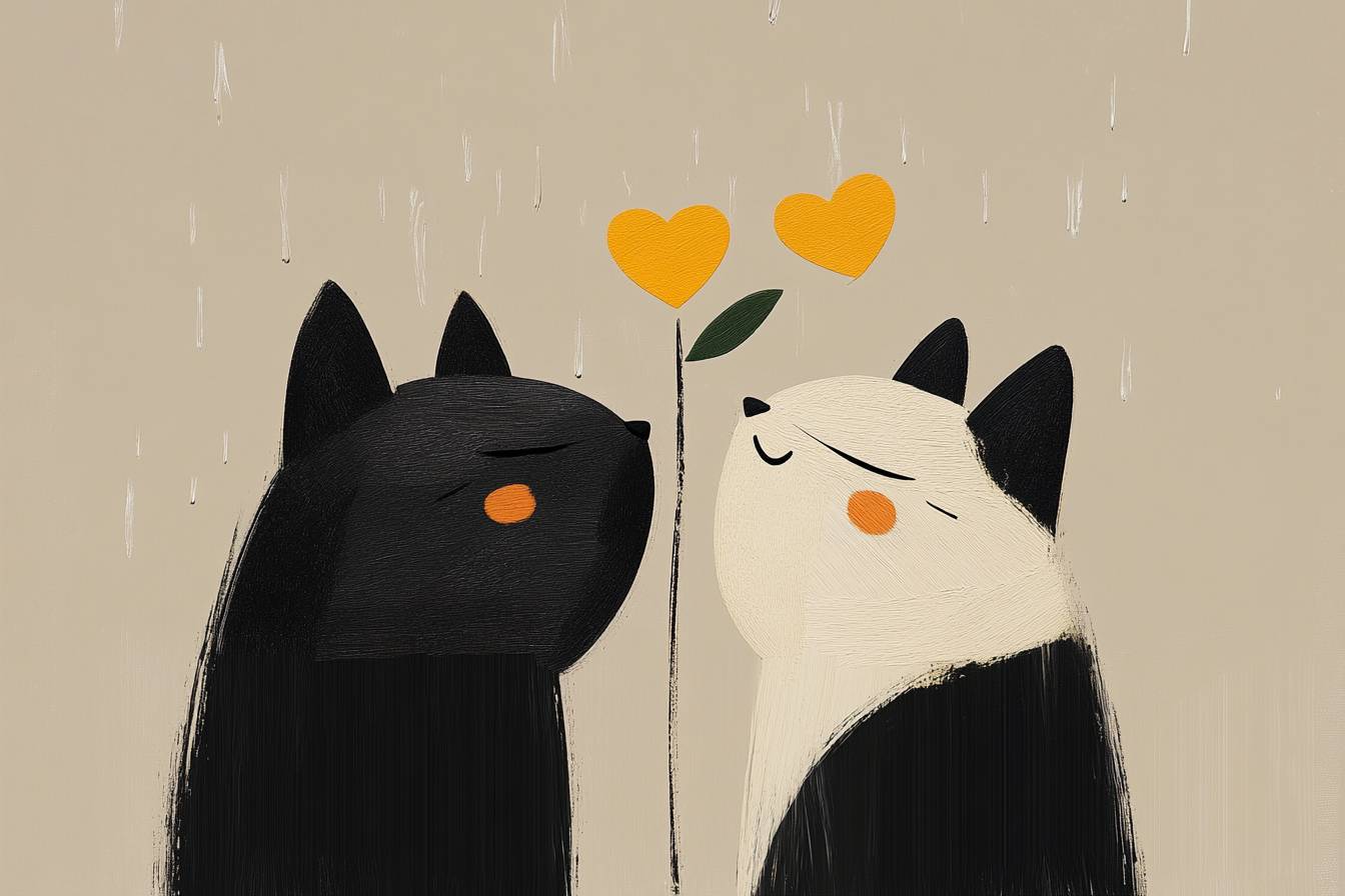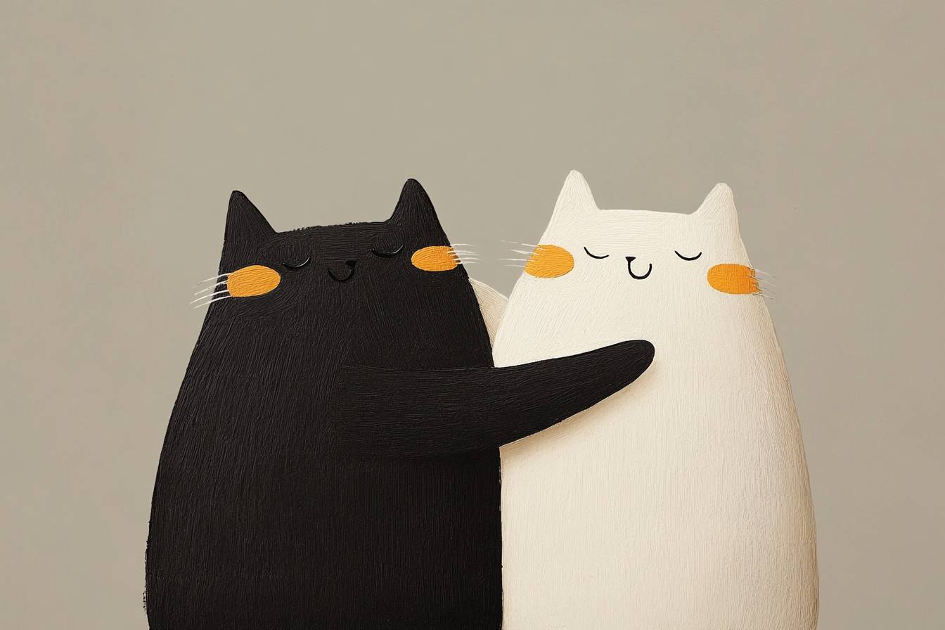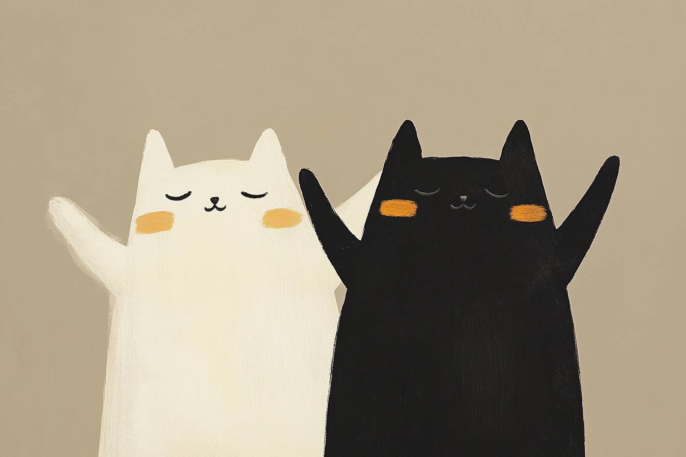 Two cute cartoon cats doing the T-pose at each other.