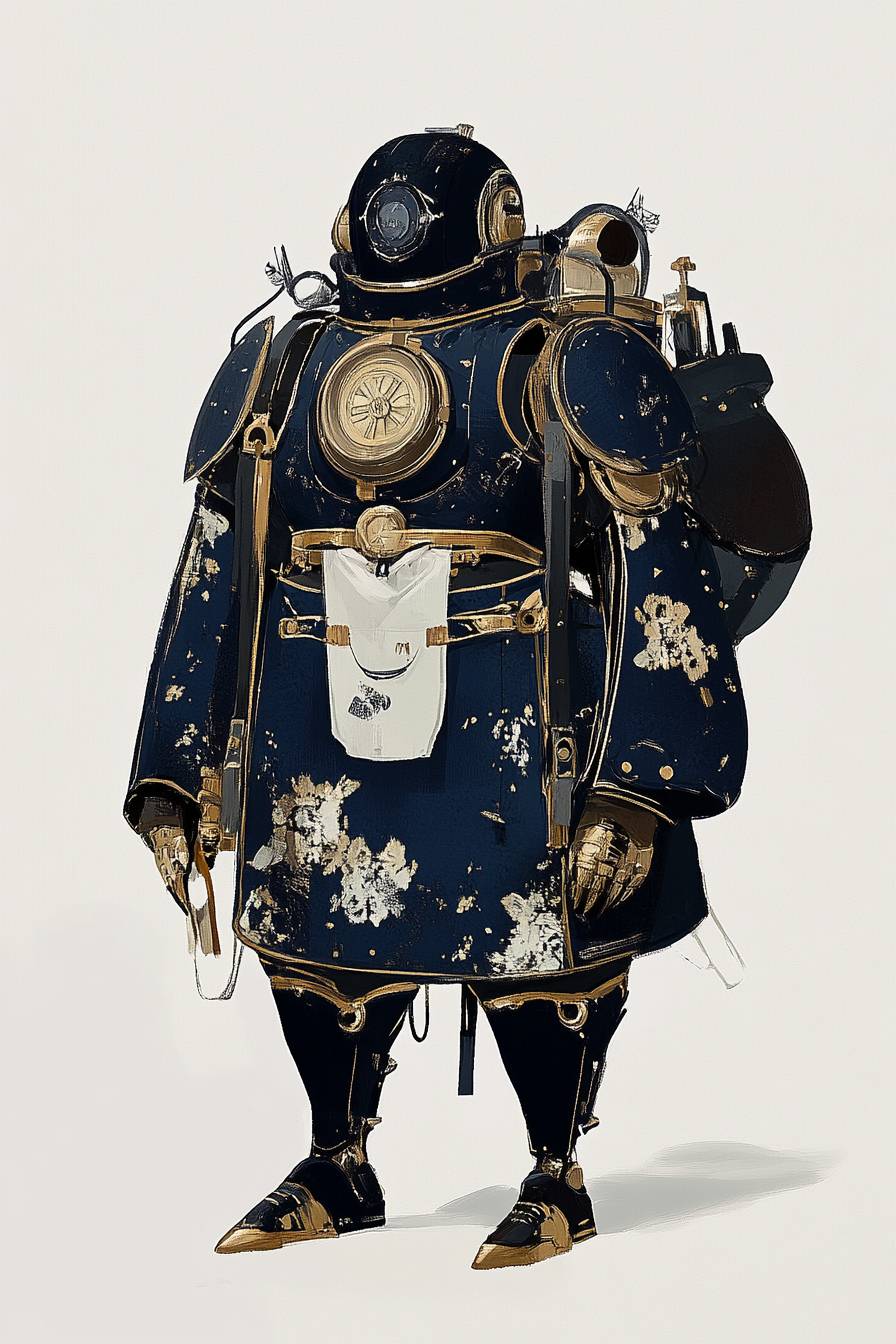 Concept art character design of retropunk steam knight