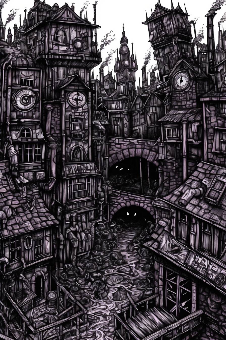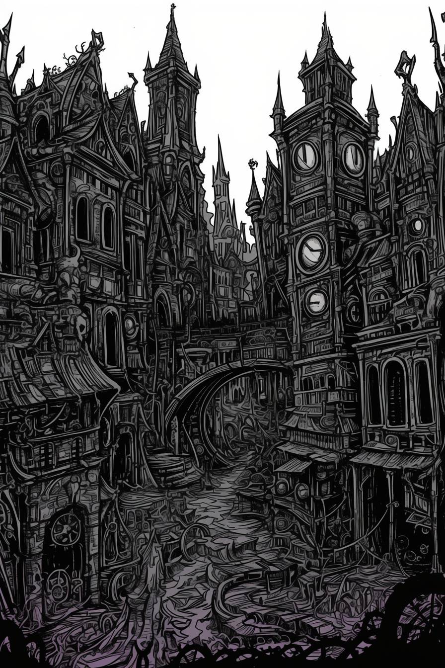 manga-style urbanscape of 19th century steampunk megacity --sref 1522765165 --niji 6 --ar 2:3 --style raw
