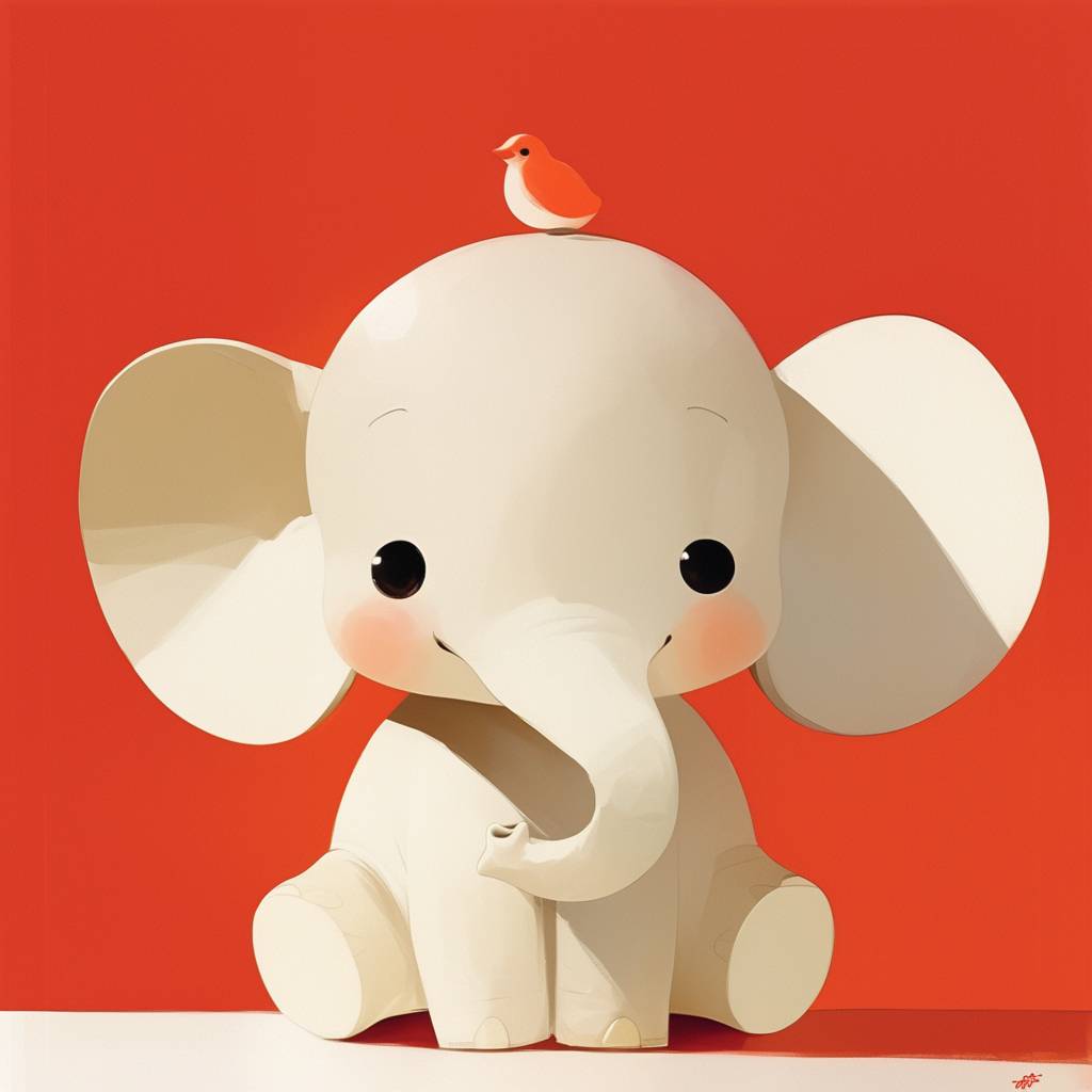 cute elephant + Digital art, Disney, Pixar, bright color + amazing background