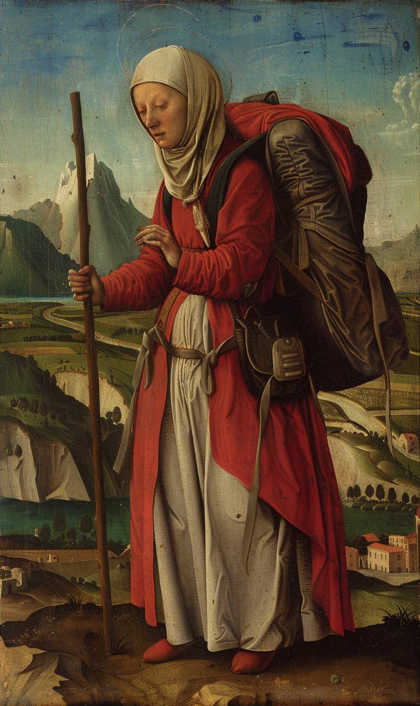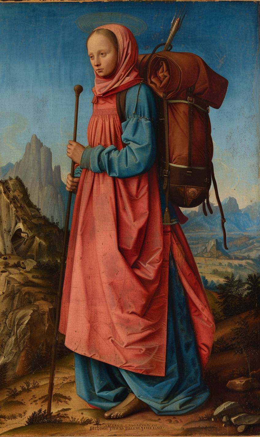 Antonello da Messina's painting depicts a lady backpacker traveler.