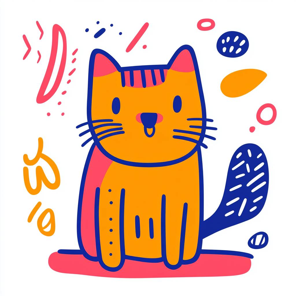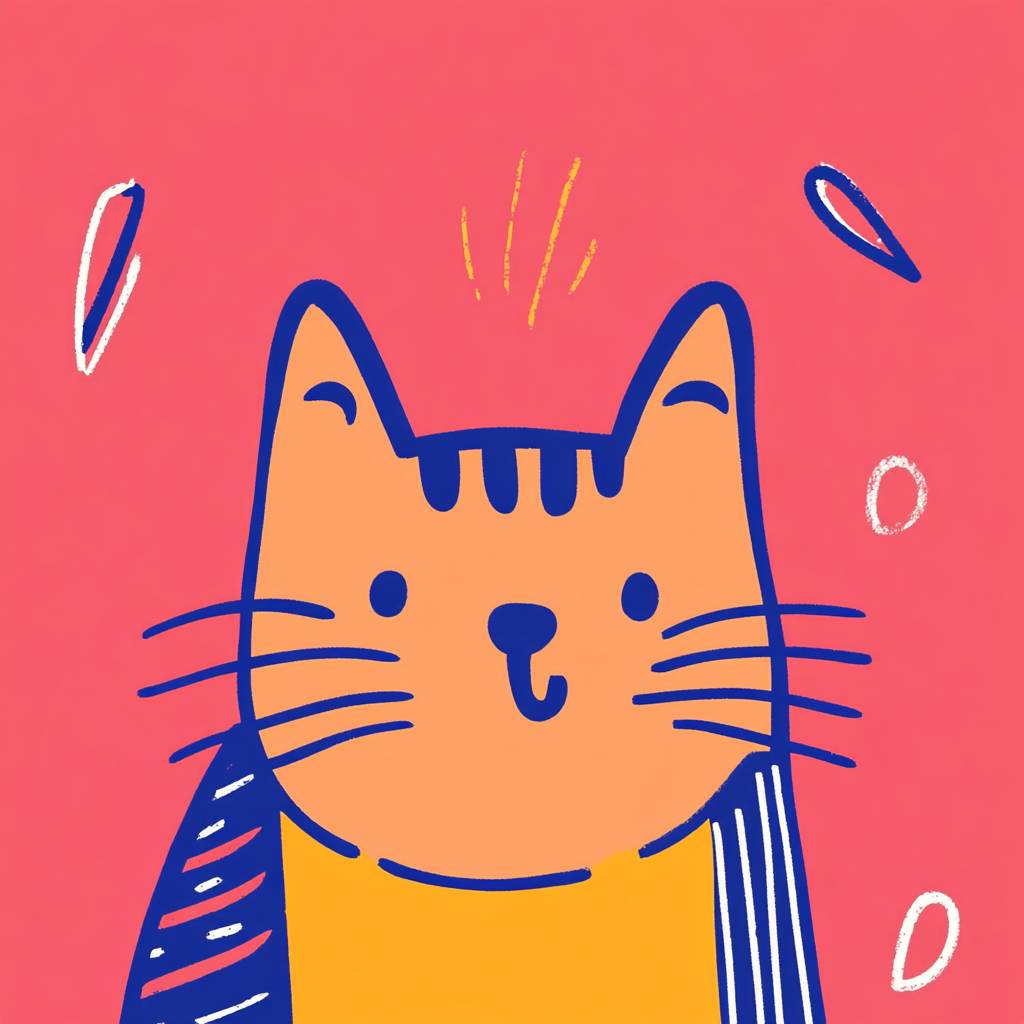 Simple minimalist kid's hand-drawn crayon cat cafe logo