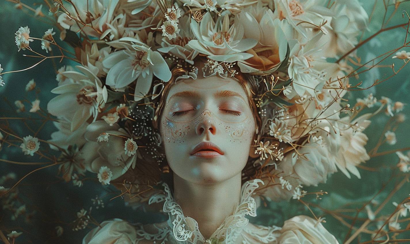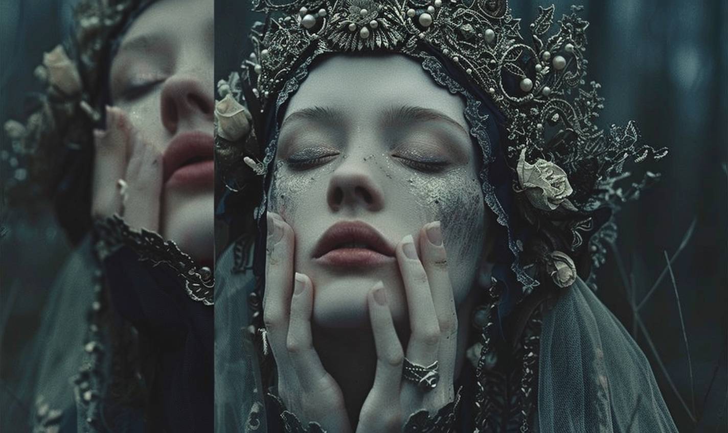 Laura Makabresku's haute couture portrait of High Elven Priestess --v 6.0 --ar 5:3