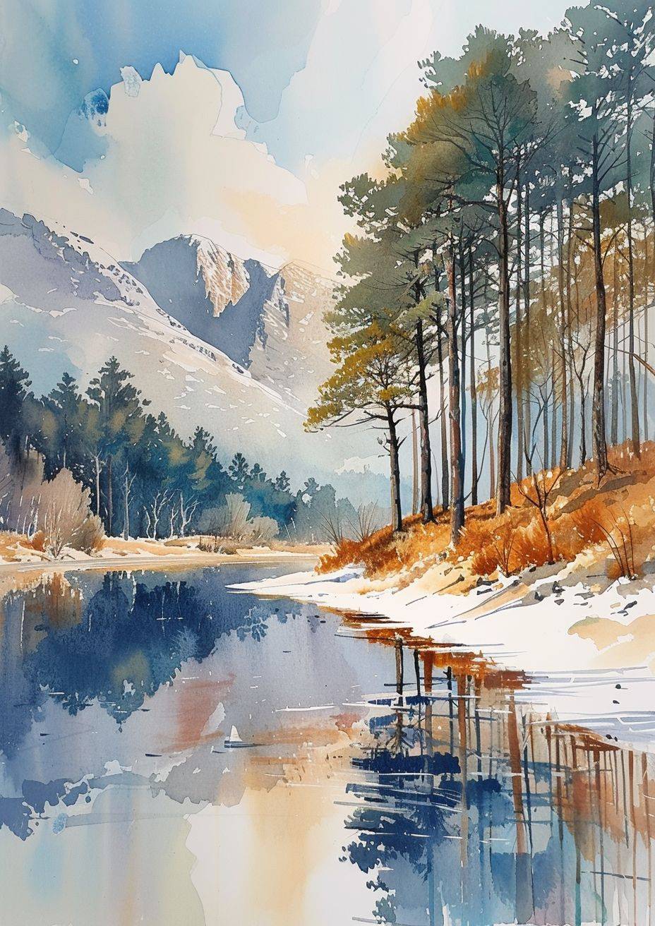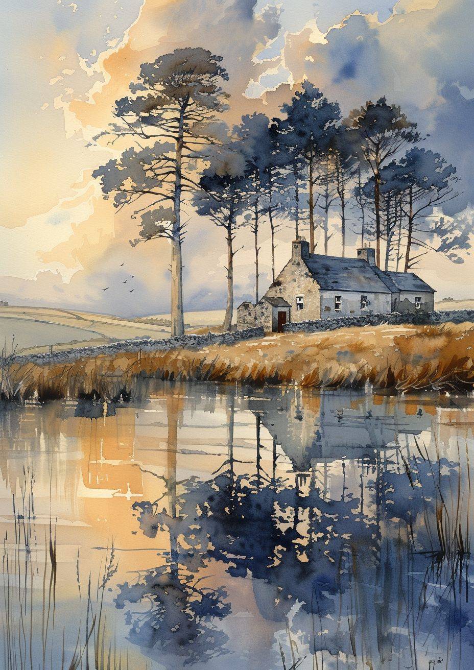 Create a beautiful Irish landscape watercolor painting using the rule of thirds.