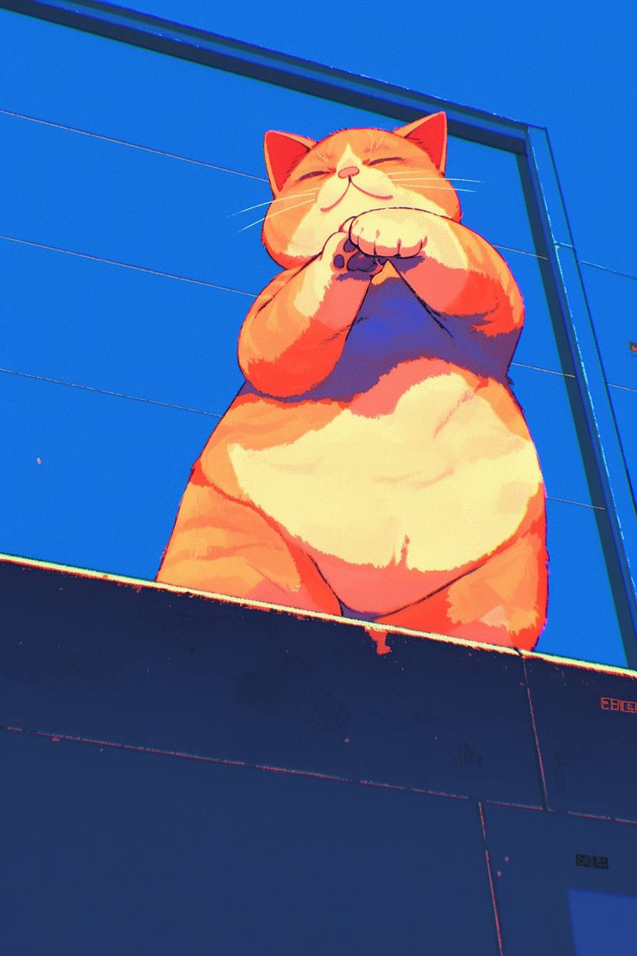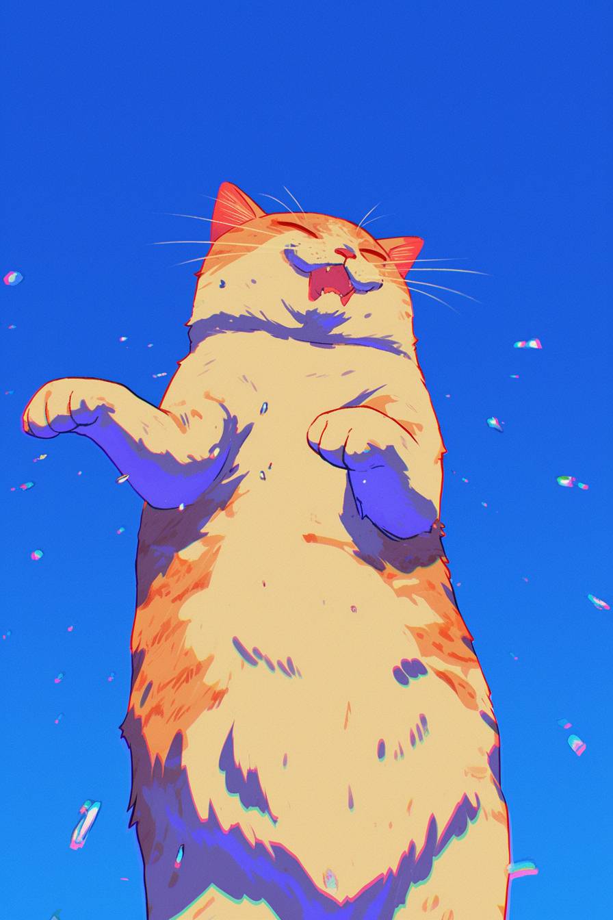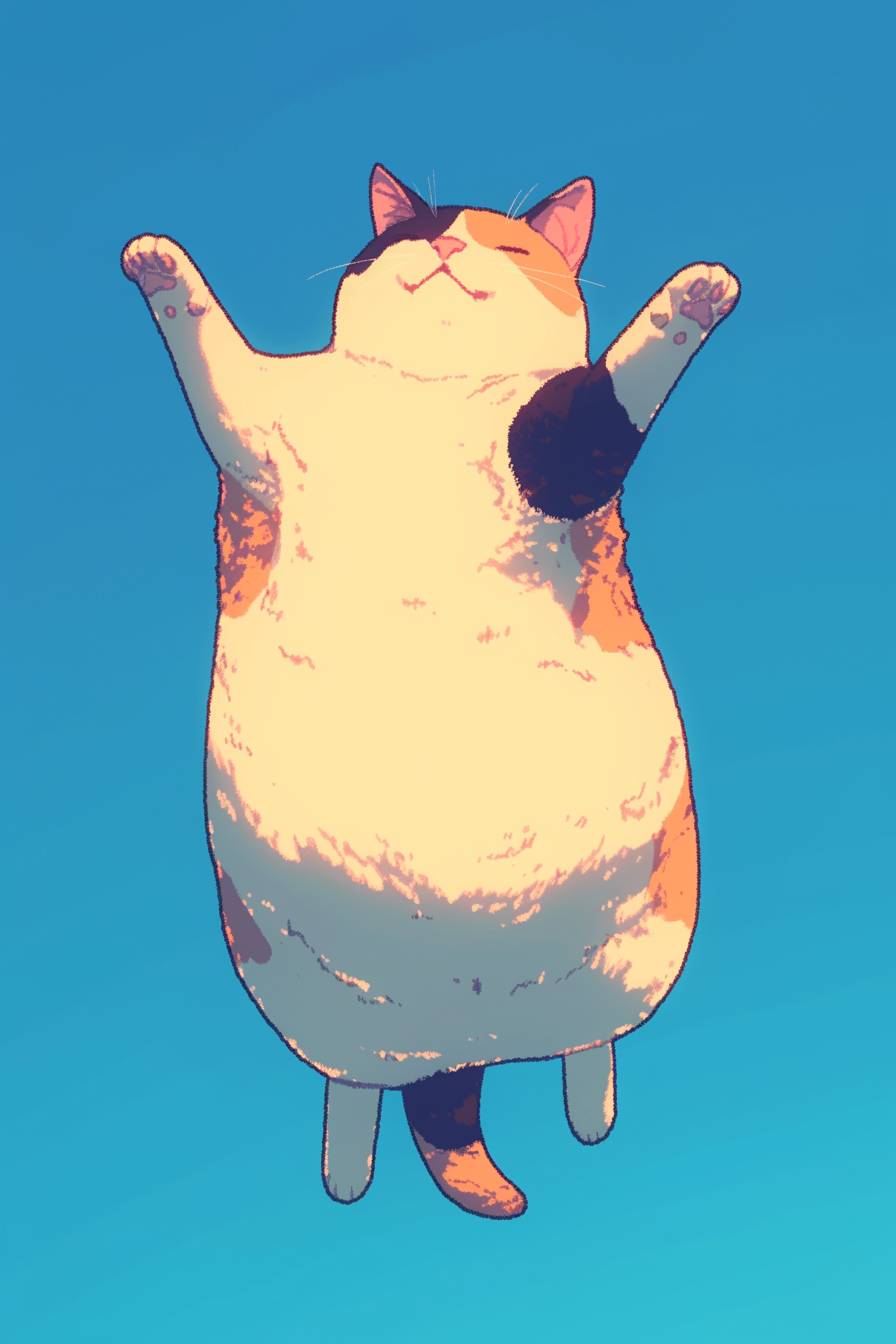A cute chubby cat punching in the air --sref 3664304104 --ar 2:3 --niji 6