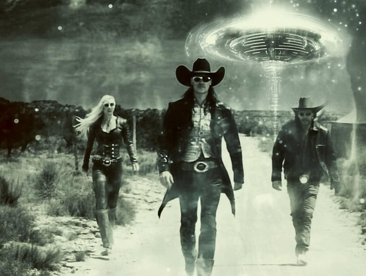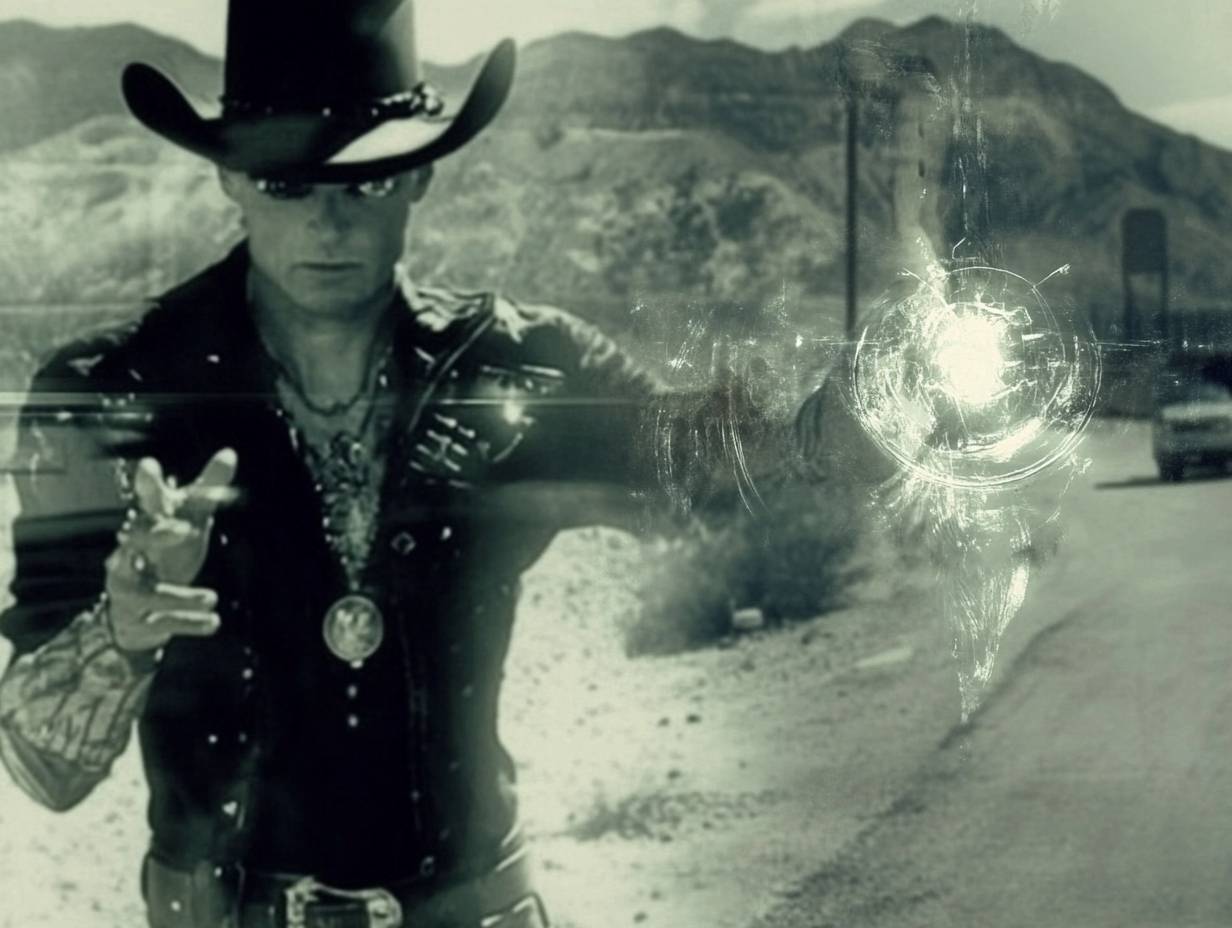Action scene from an arcane westernpunk sci-fi movie