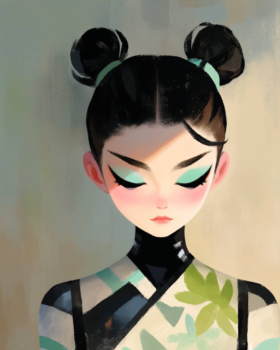 Anime-style portrait of Zendaya in a futuristic, cyberpunk outfit, neon lights reflecting off her skin, dramatic cityscape background, bold colors --chaos 22 --ar 4:5 --sref 3280551570 2755159850 1139942962 --profile emnlh39 --sw 500 --stylize 500 --niji 6