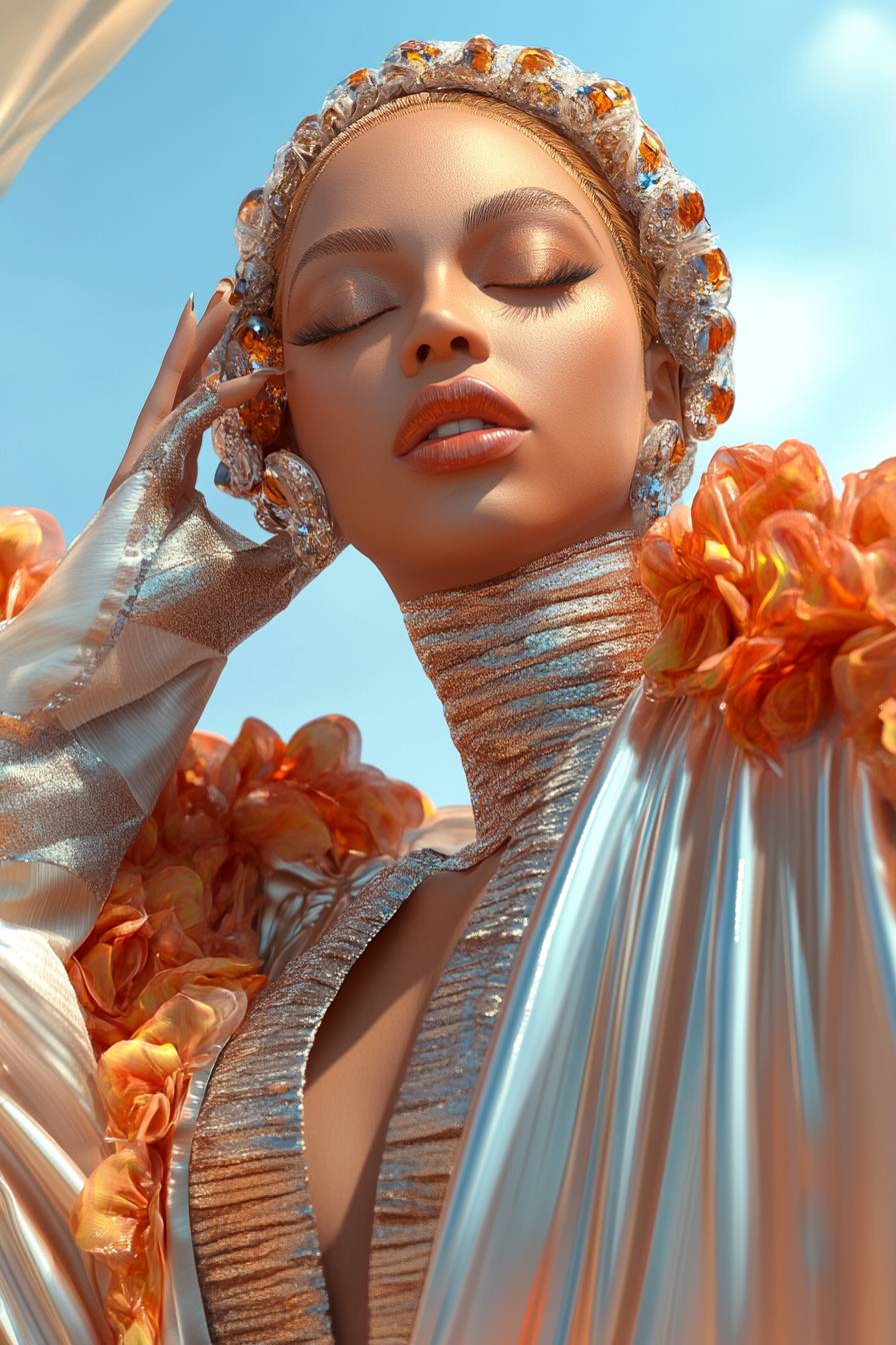 Beyoncé as a fierce anime warrior queen, royal armor, powerful pose, fantasy world --sref 233789593 --p 9crcw4d --c 20 --sw 1000 --s 1000 --ar 2:3 --v 6.1