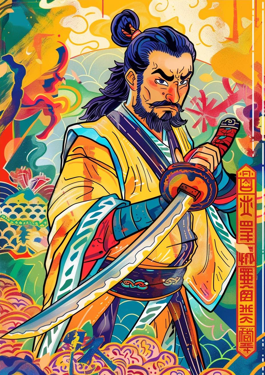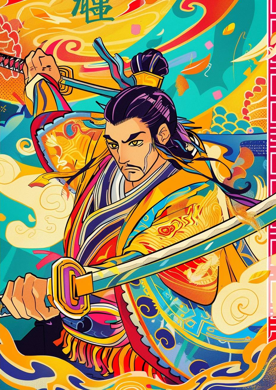 A samurai sharpens a sword.