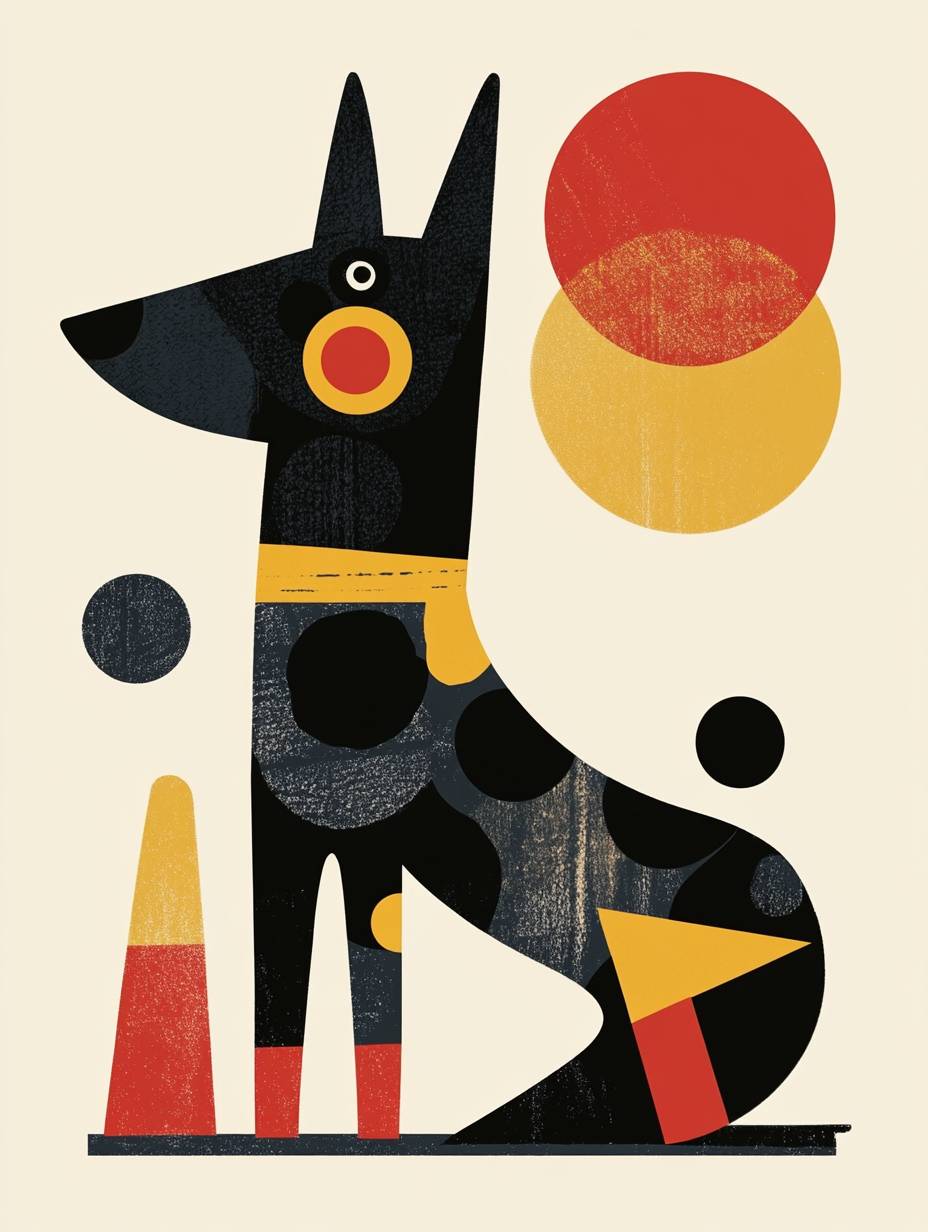 minimal abstract bohemian dog Illustration, Screen Print, graphic design Poster --ar 3:4 --v 6.1