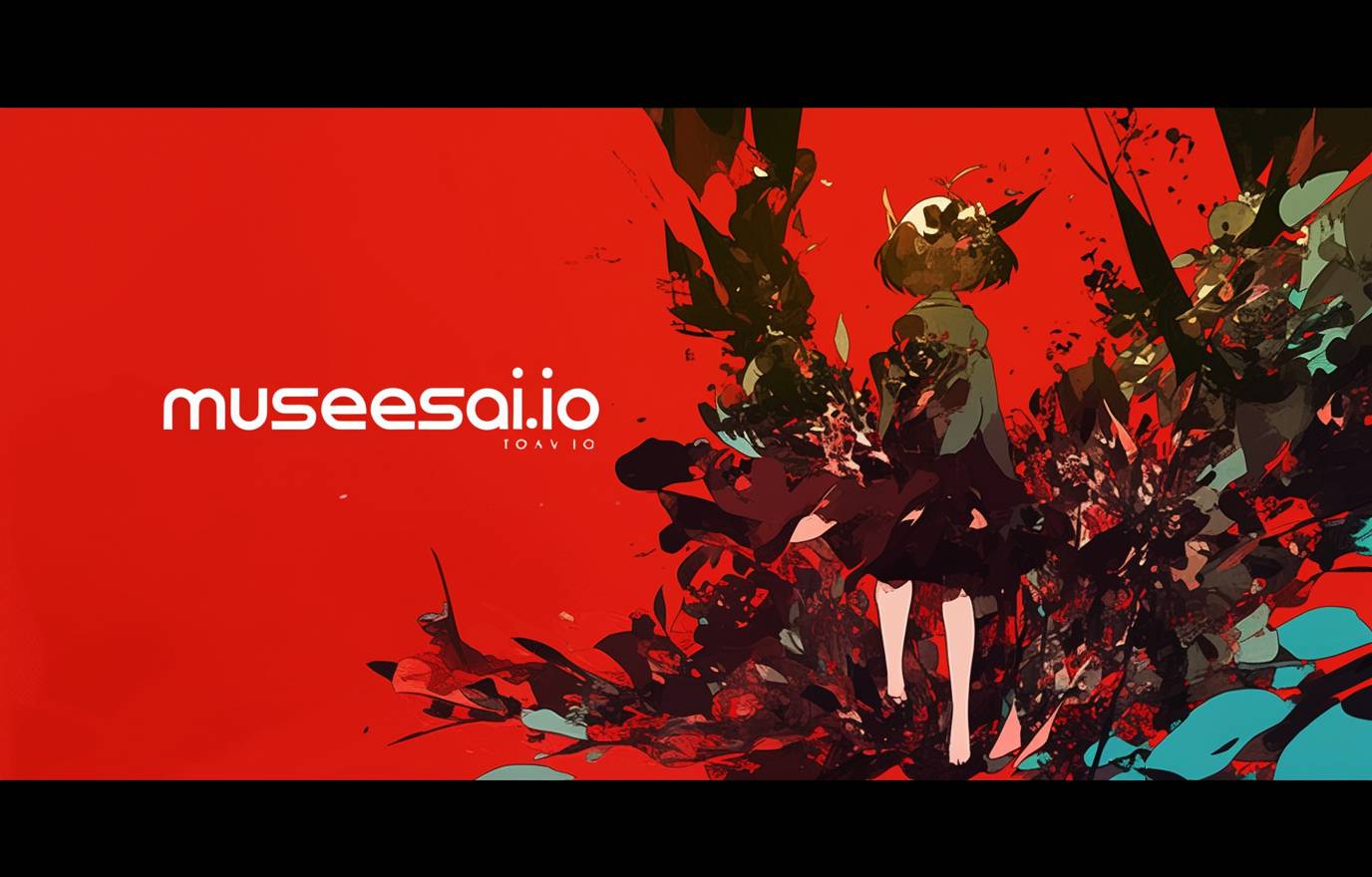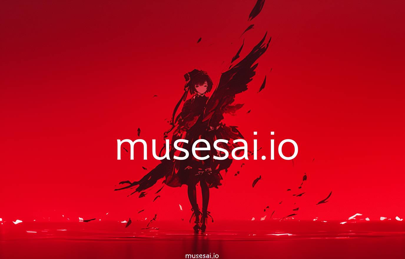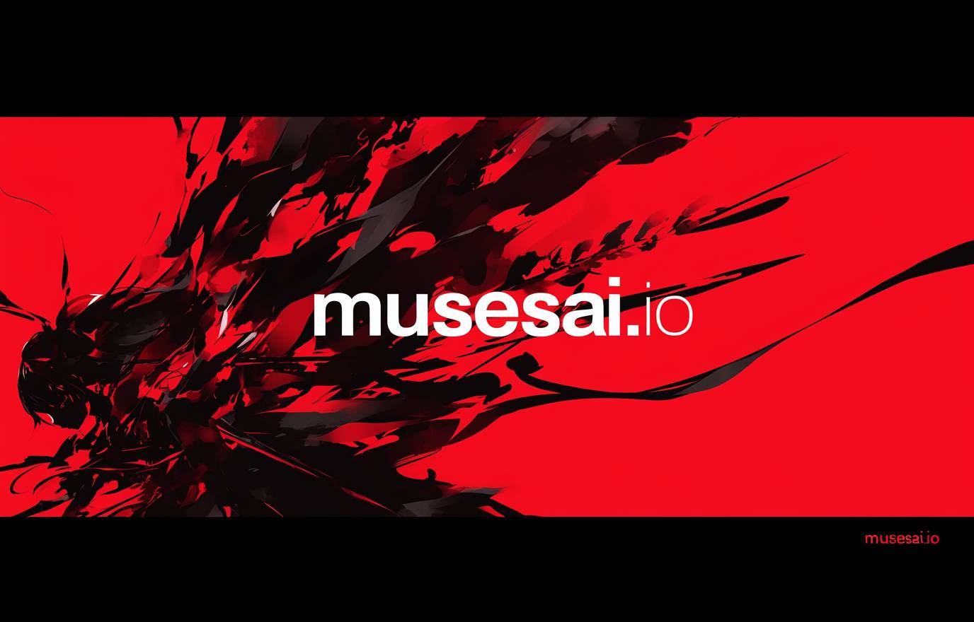 red background, displaying text "musesai.io", text should be as large as possible in the image, grand and imposing, minimalist, simple --ar 14:9 --stylize 50 --niji 6 --raw