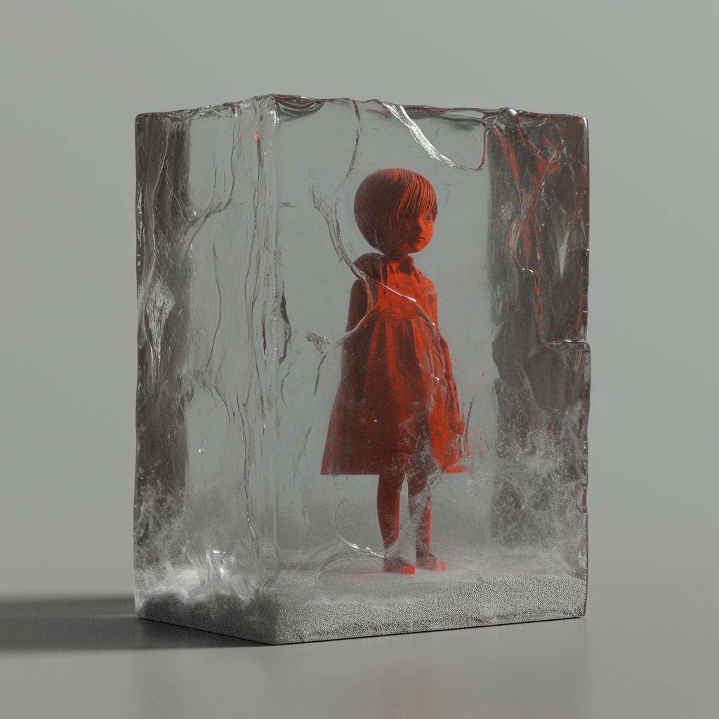 Use the exactCreate a photorealistic image of a [OBJECT] in a larger and thicker block of ice. The ice block should be massive and imposing, with its sheer size and density making the [OBJECT] inside appear more blurred and shadowy. --v 6