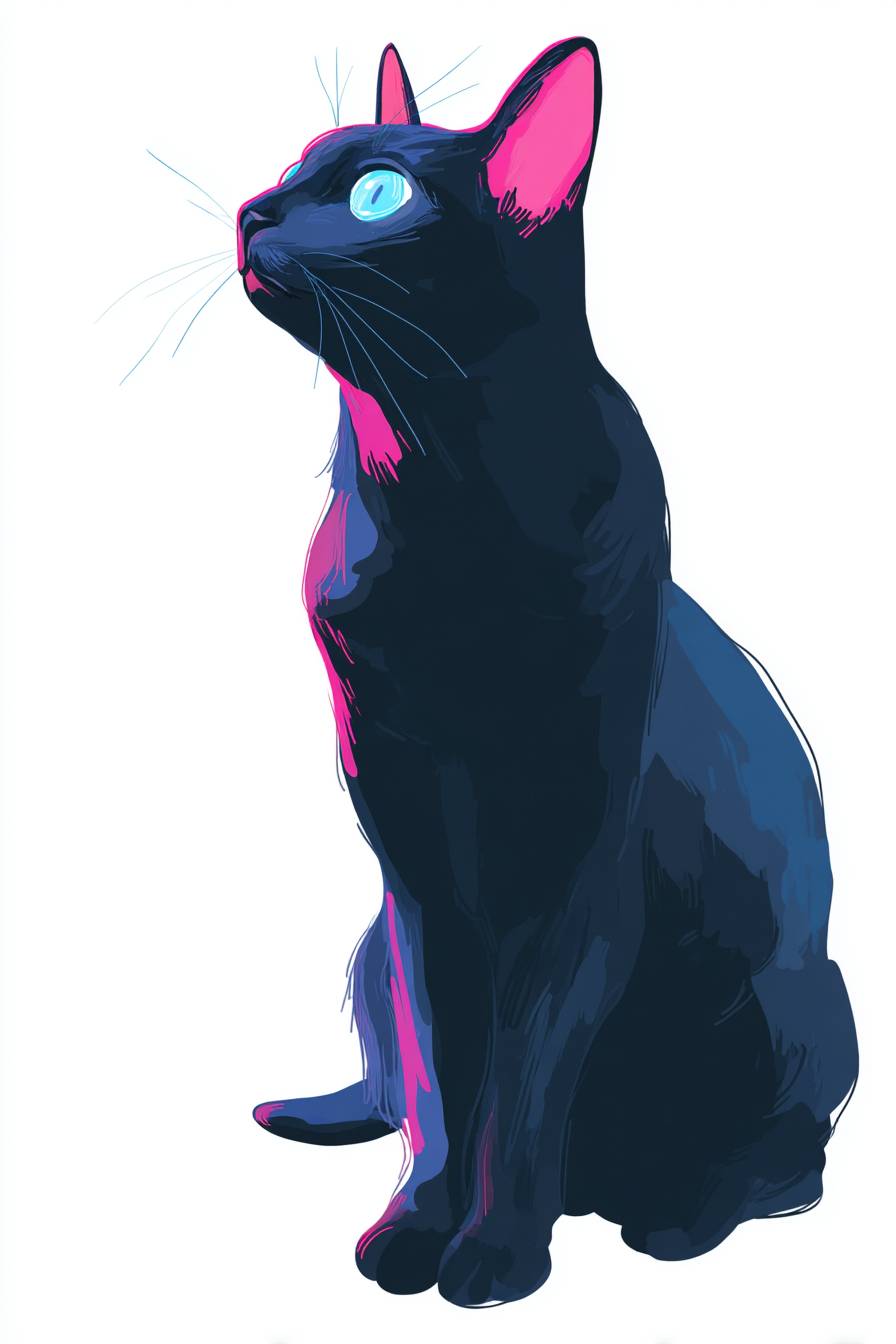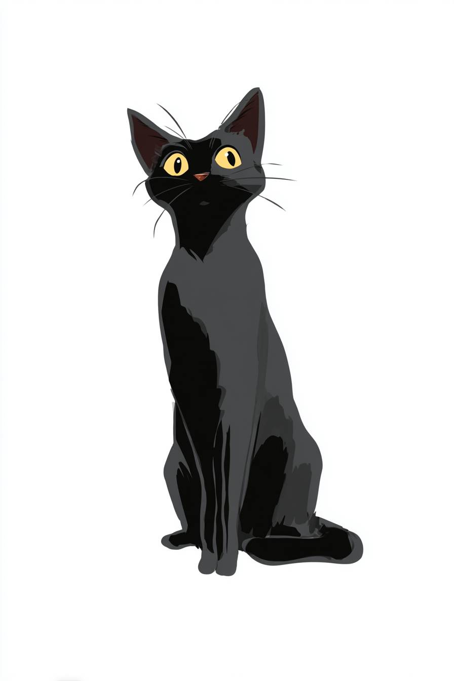 flat vector,minimal details, happy tempera gouache, black cat drawing on blank background, in the art style of japanese vintage 80's kawaiicore, cute illustrations, bold color palette, gouache, romanticized happy wonderful life, wimmelbilder, pont-aven school, isolated by white background --chaos 20 --ar 2:3 --stylize 50 --v 7.0